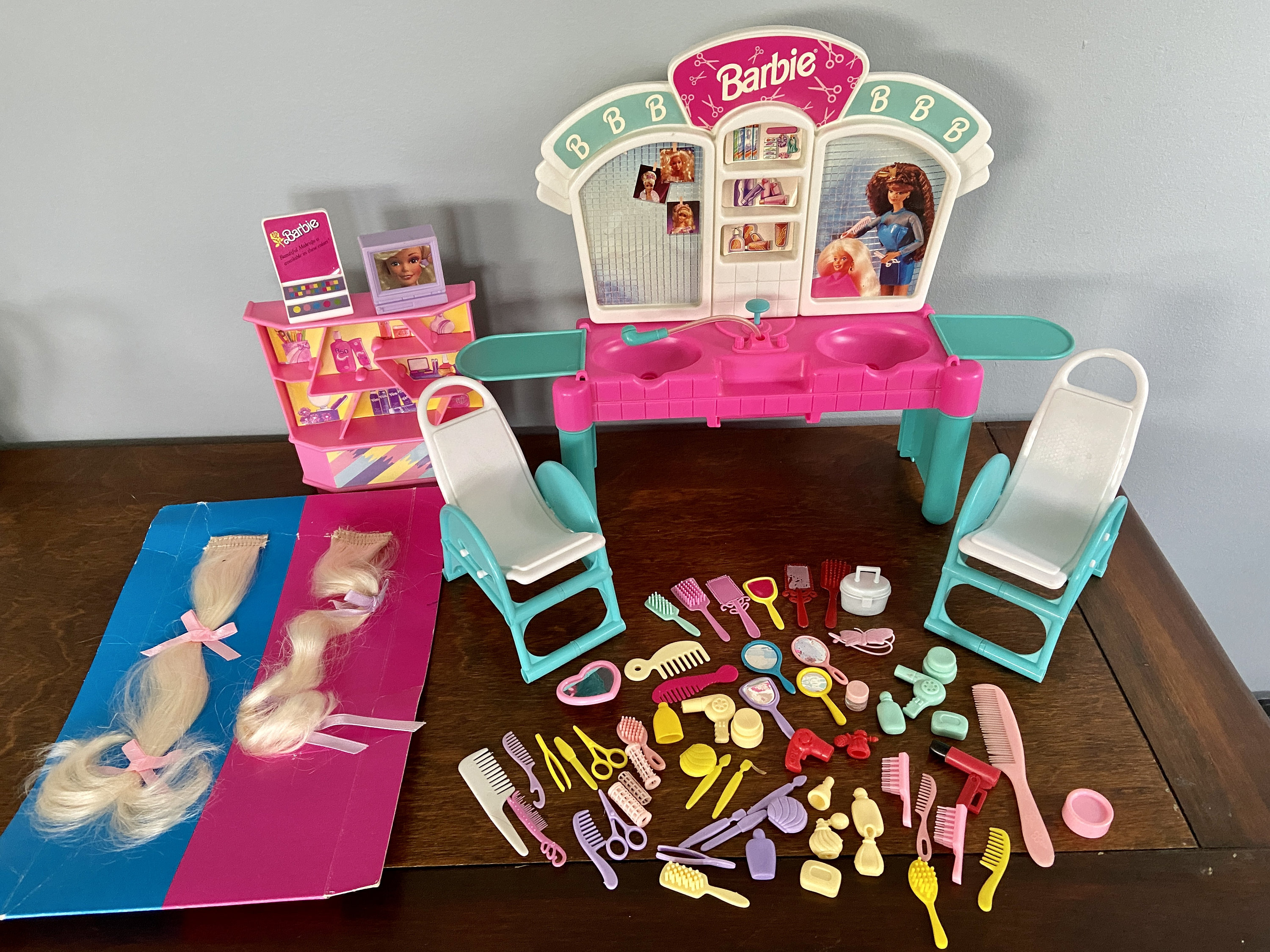 Vintage 1990s Mattel Hair Salon for Barbie. Comes with a large selection of beauty salon doll access...