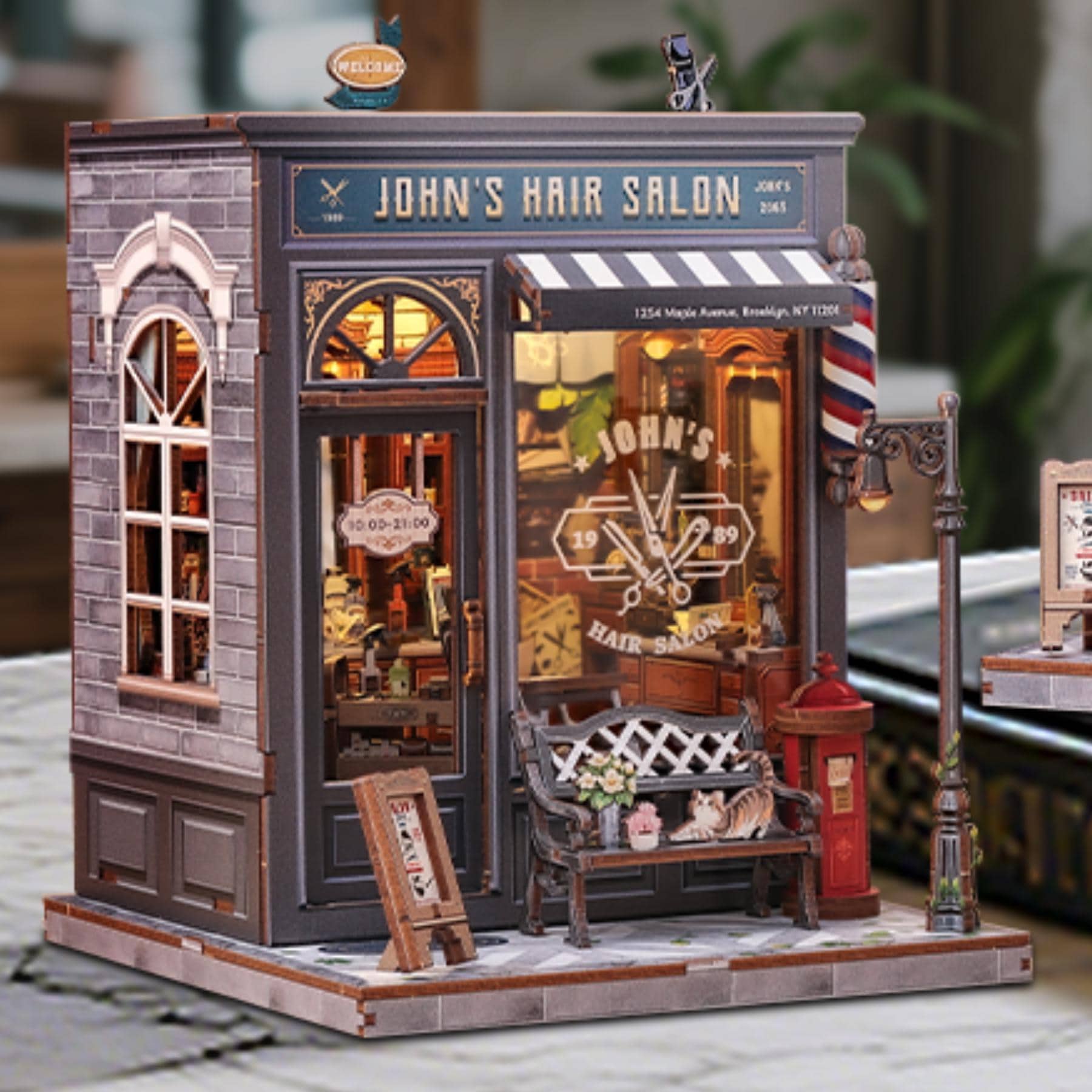 John's Hair Salon Book Nook | Vintage Barbershop Bookshelf Insert |...