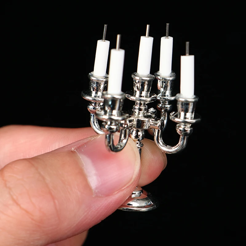 1Set Dollhouse Miniature Candles and Candlestick Cake Candle Holders Toppers For Doll House Decorati...