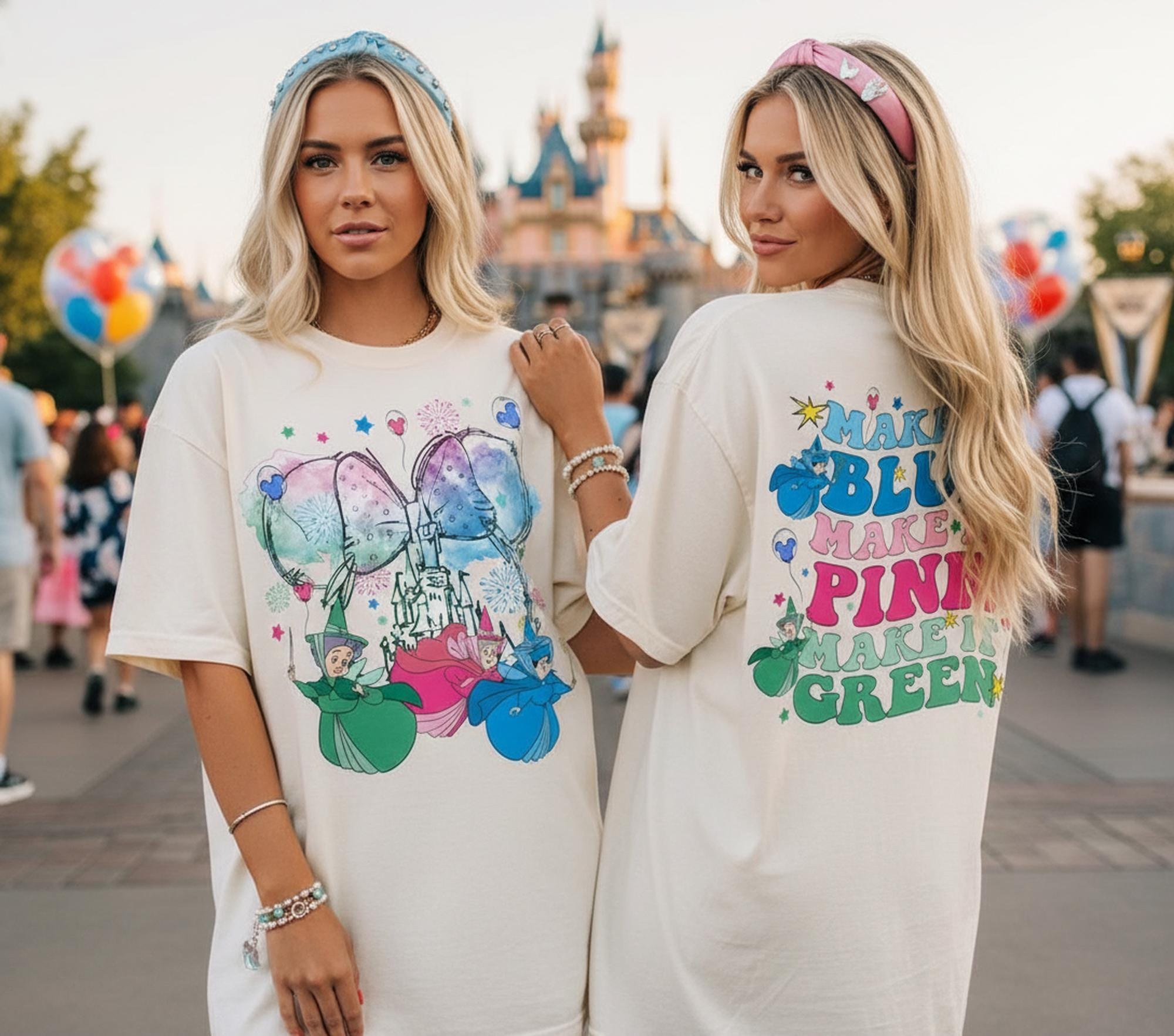 Two Sided Disney Flora Fauna And Merryweather Sleeping Beauty Fairy Godmother Make It Blue Make It P...