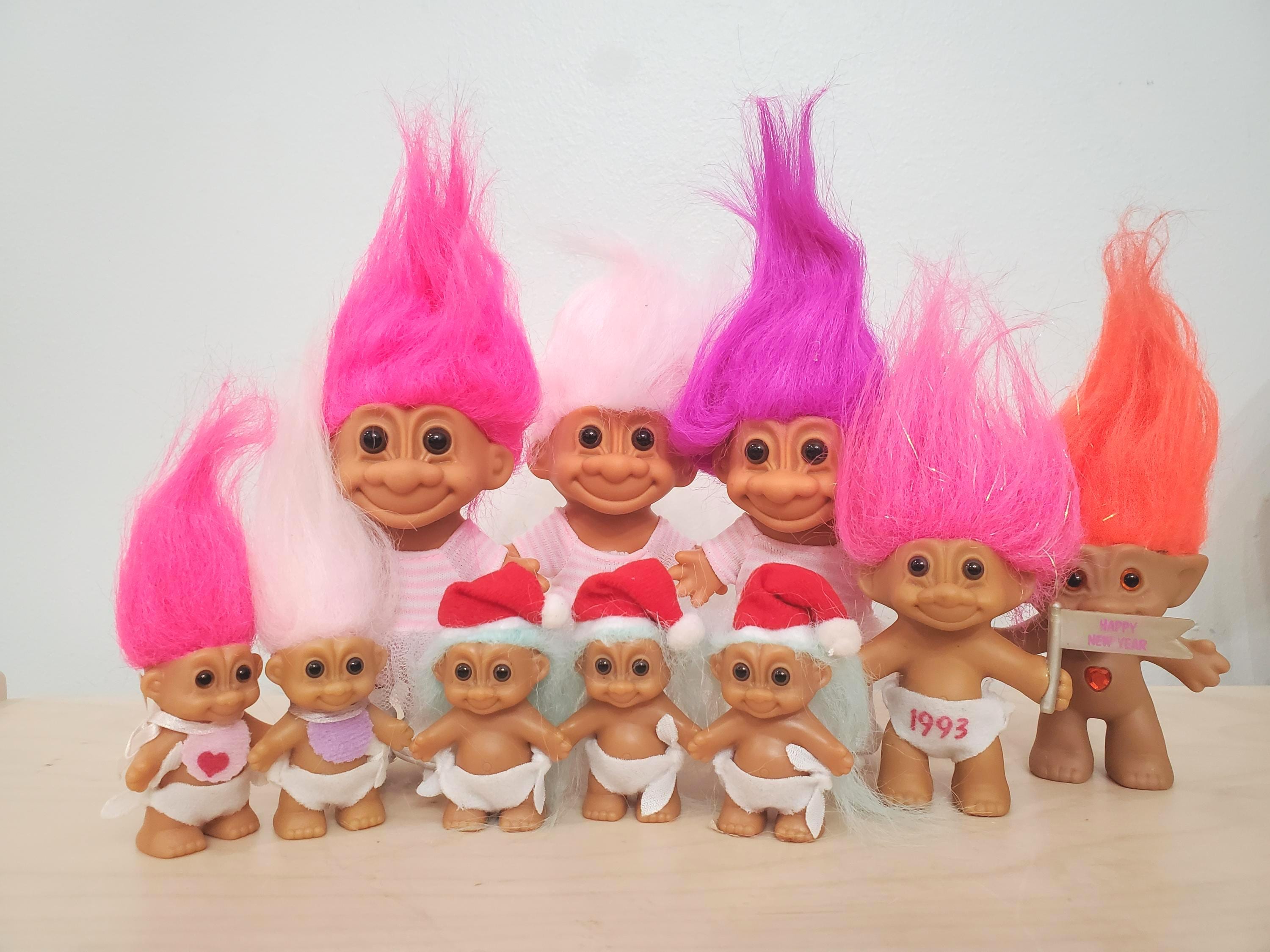 "Vintage Trolls from the 90s! Trolls are varying heights - for reference, the Treasure Troll (O...