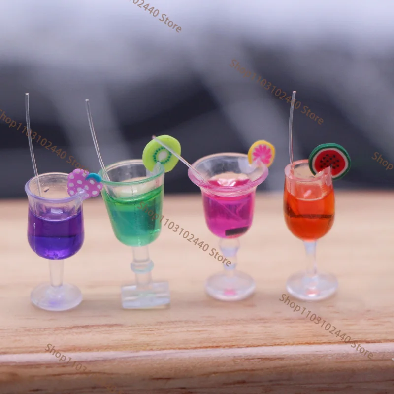 4Pcs 1:12 Dollhouse Miniature Colorful Cocktail Glass, Bar Drinks Accessories for Kids Pretend Play ...