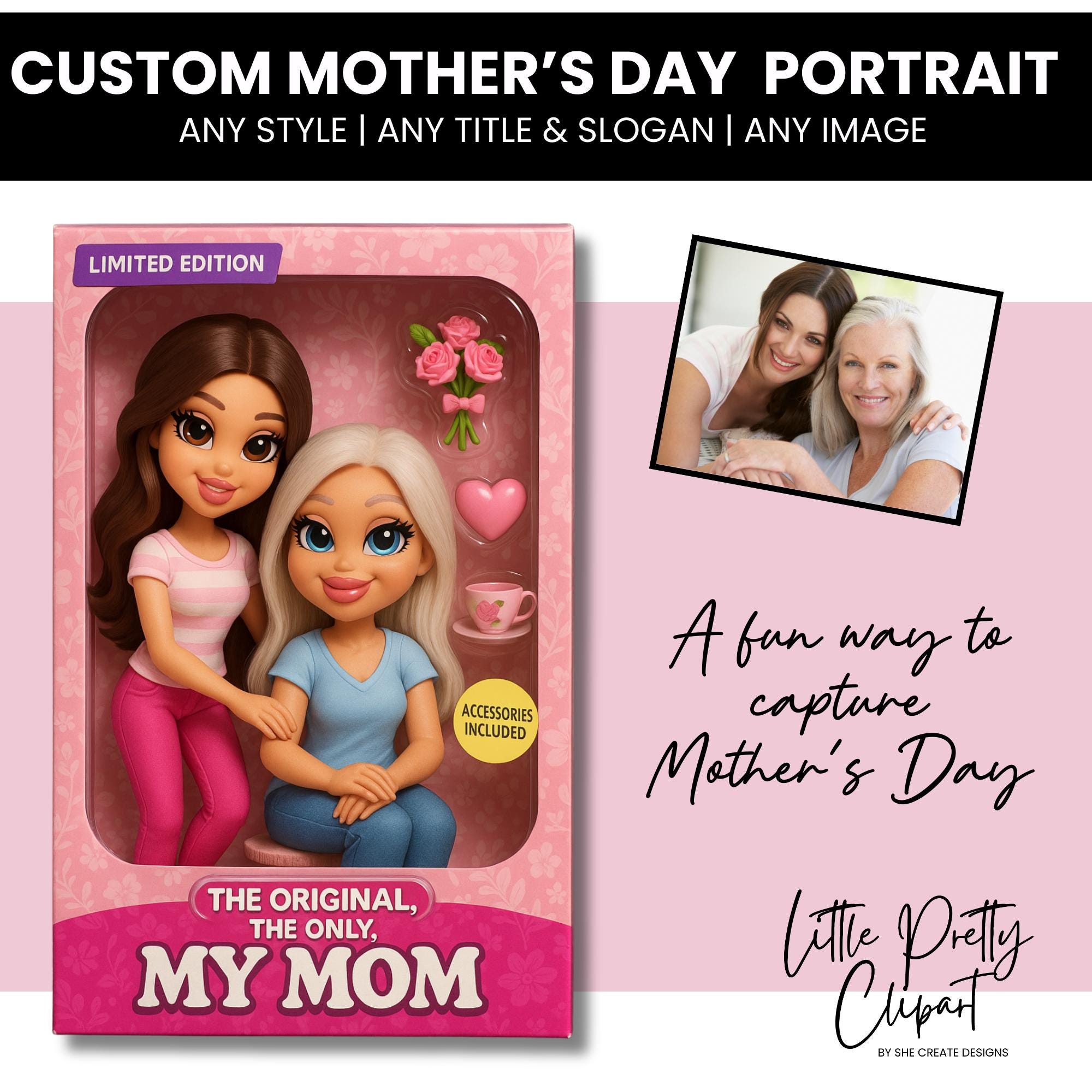 Custom Mother's Day Doll Portrait JPG | Mother Action Figure | Cust...