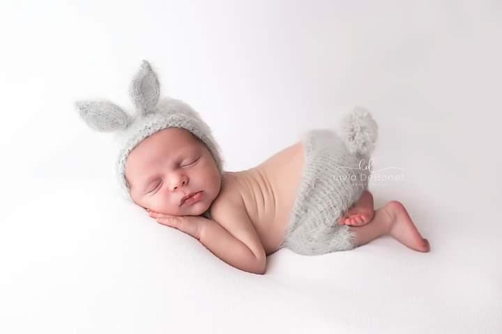 "A knitted rabbit newborn photo outfit is ideal for use as a professional newborn photography p...