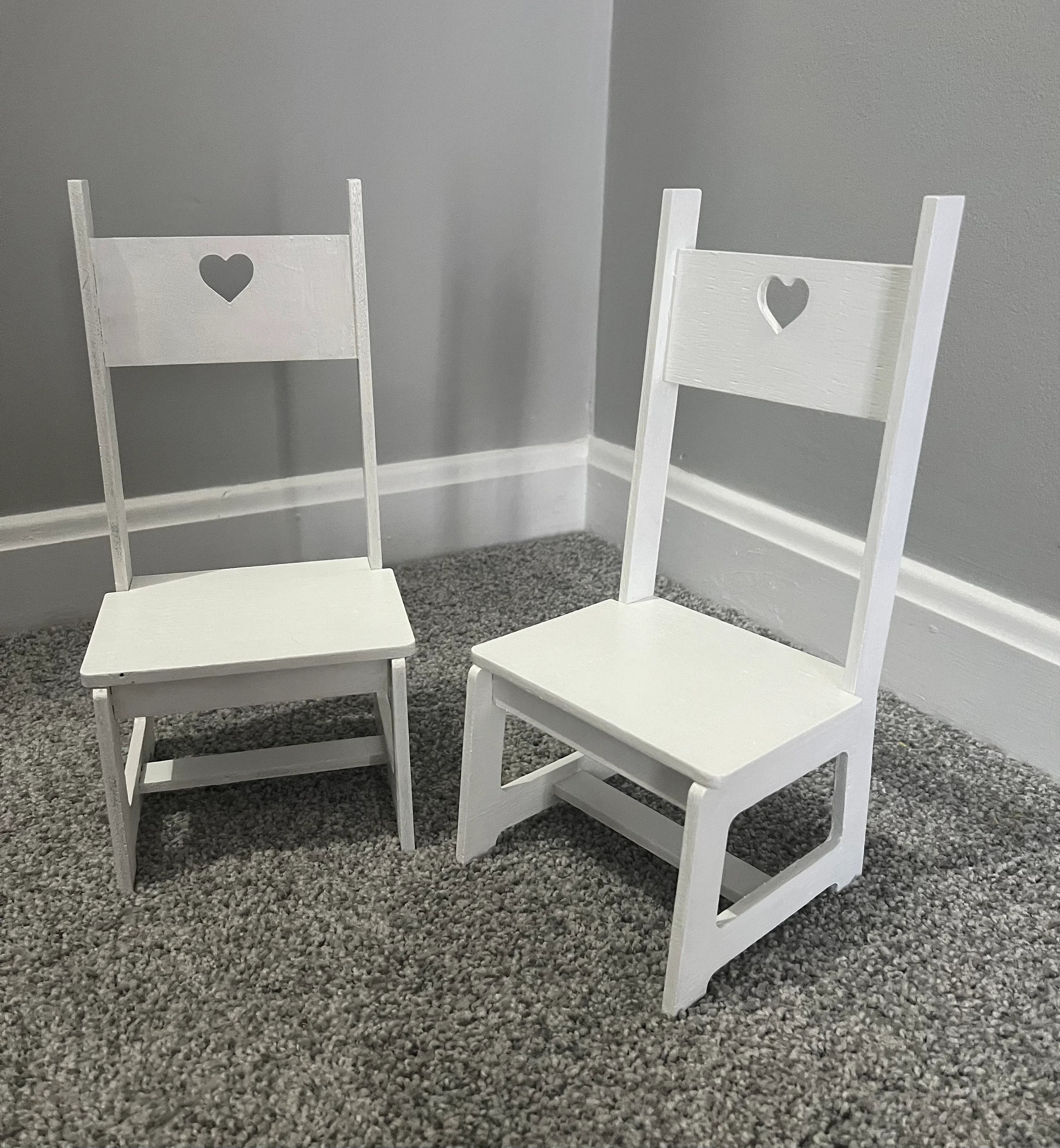 *Chairs come in cut wood to be assembled and painted* Build, and Paint your own doll sized chairs fo...