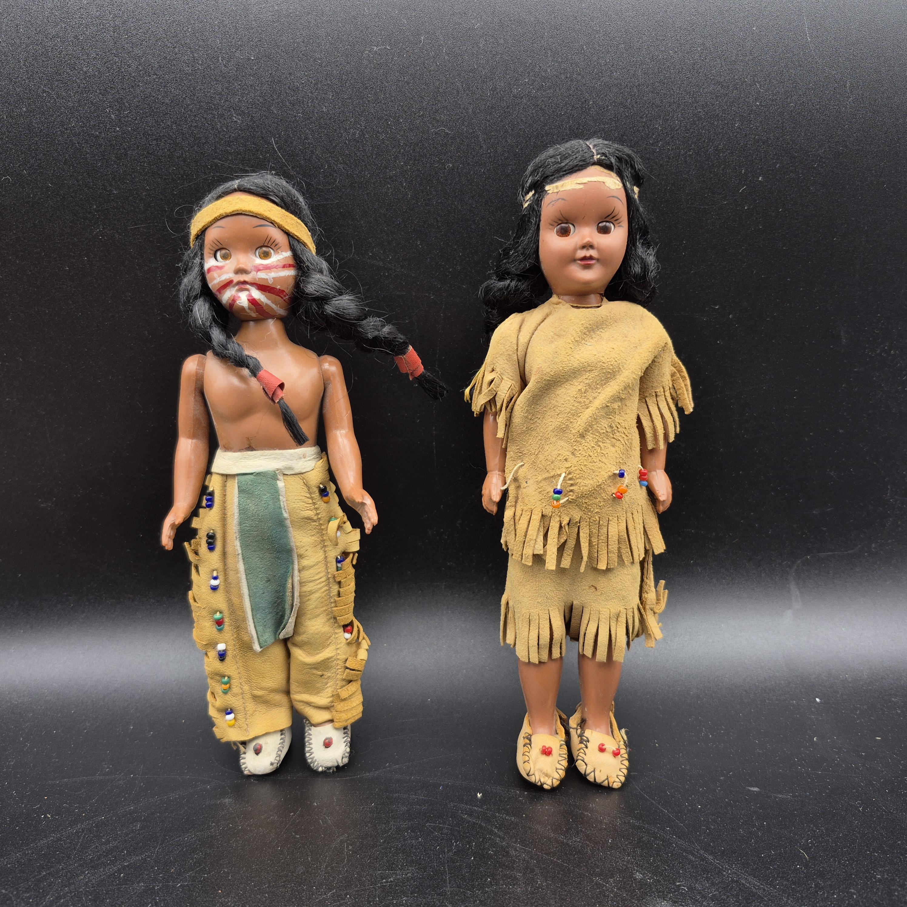 "Pair of \"Sleepy Eyes\" Native American Girl and Boy Dolls from the Plastic Molded A...