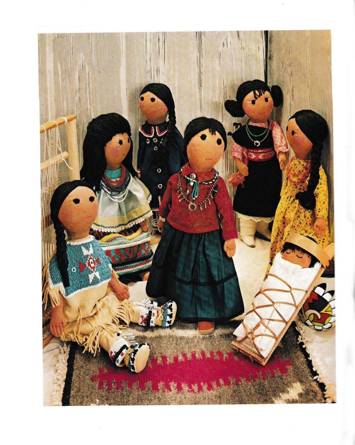 "Women's Day Six Indian 15\" Cloth Dolls and A Slumbering Papoose Full size patterns and c...