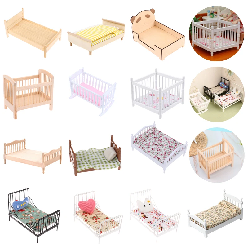 1:12 Dollhouse Miniature Wood Bed Bedroom Simulation Furniture Model Mini Doll Bed Doll Bedroom Doll...