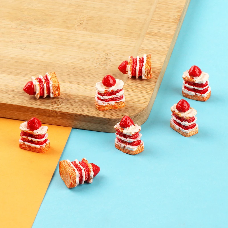 10pcs 3D Mini Resin 3 Layers Strawberry Cake Kawaii Dollhouse Minia...