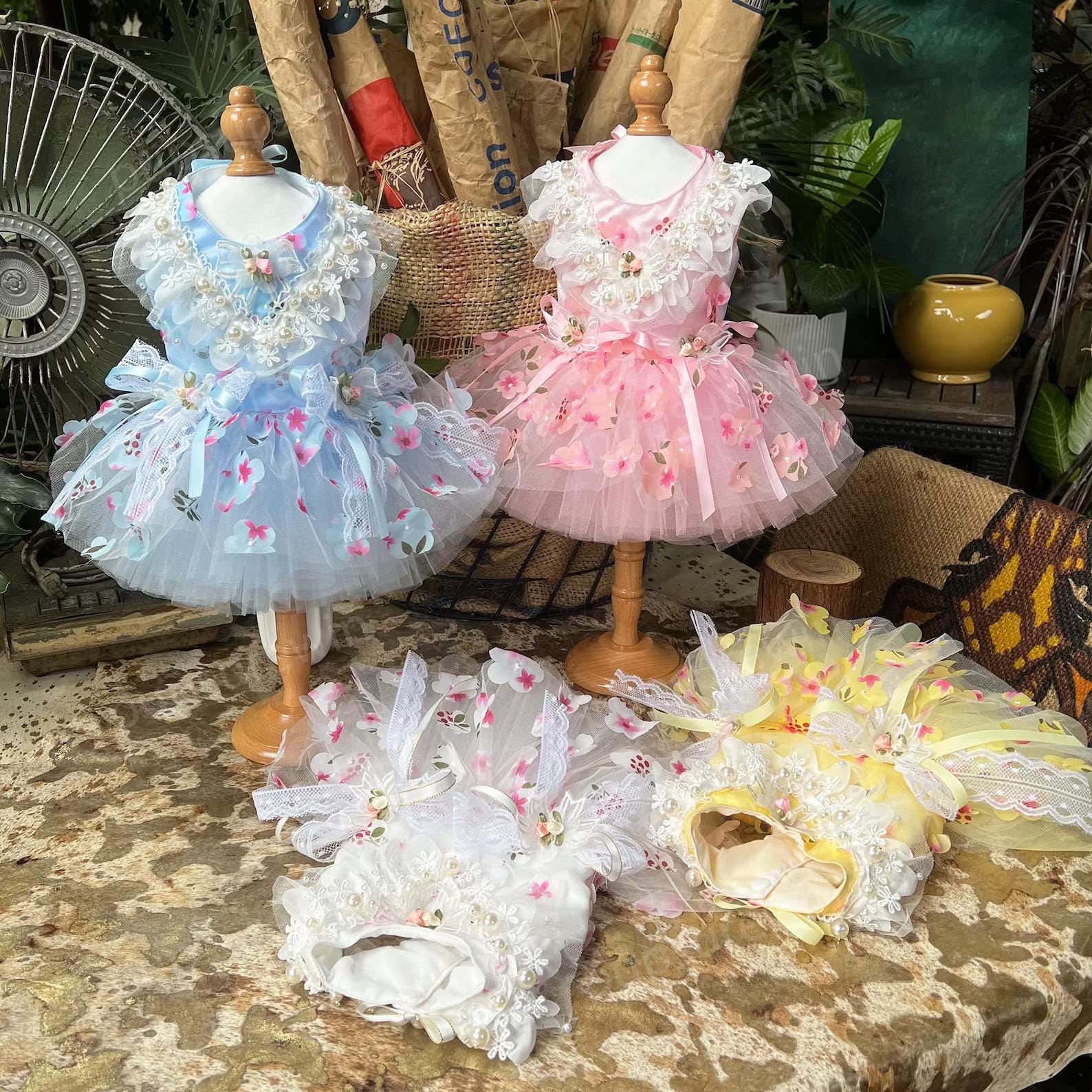 Custom Dog Flower Dress Sakura Pink, 3D Floral Fancy Dress for Larg...