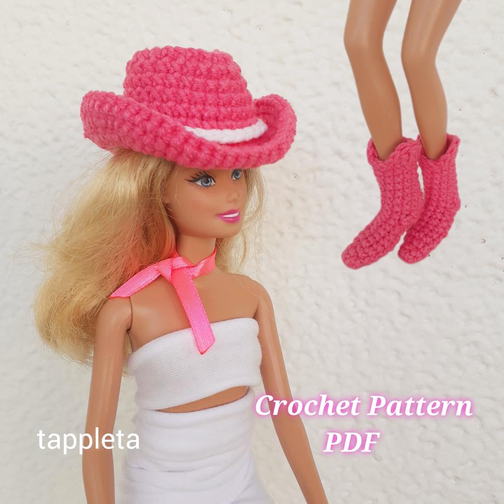 "cowgirl hat and boots crochet pattern, 11.5\" doll pink ...