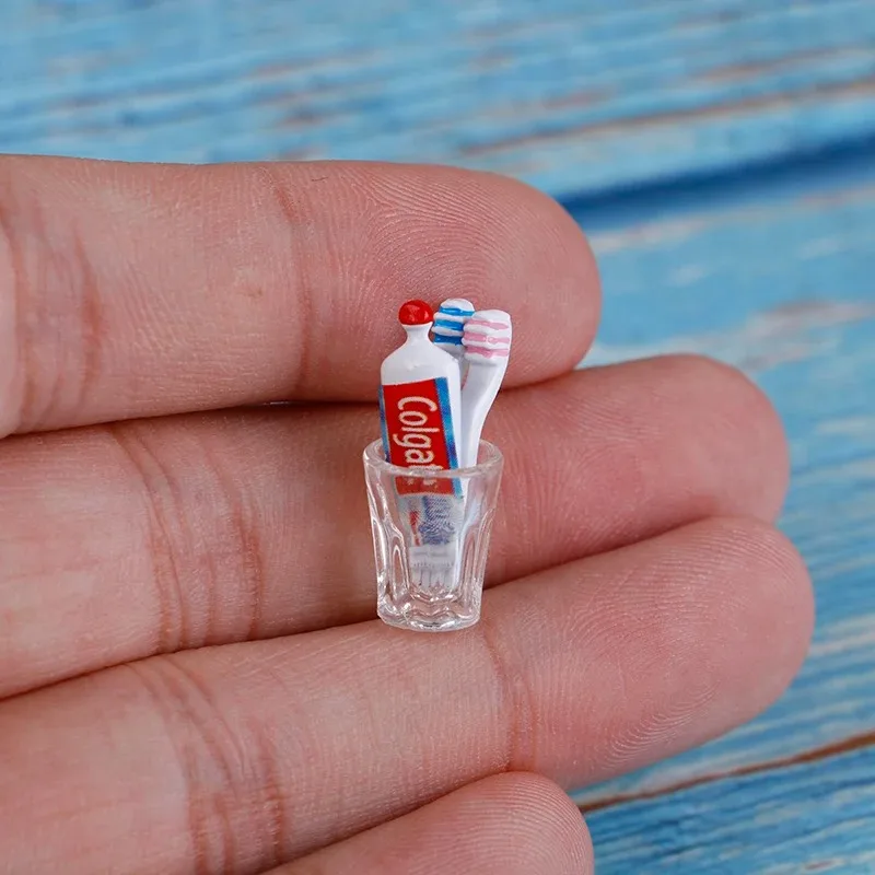 4Pcs/Set Dollhouse Miniature Cup Toothpaste Toothbrush Set Miniature Dollhouse Bathroom Scene Decor ...