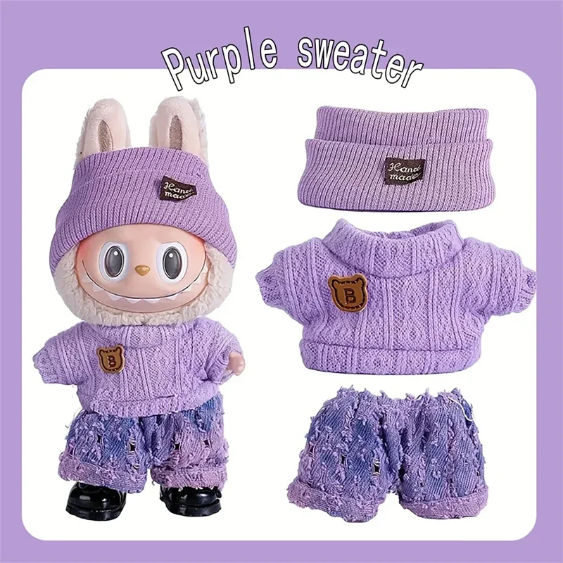 1 Set Purple Fashionable Doll Clothing for Labubu (hat + Sweater + ...