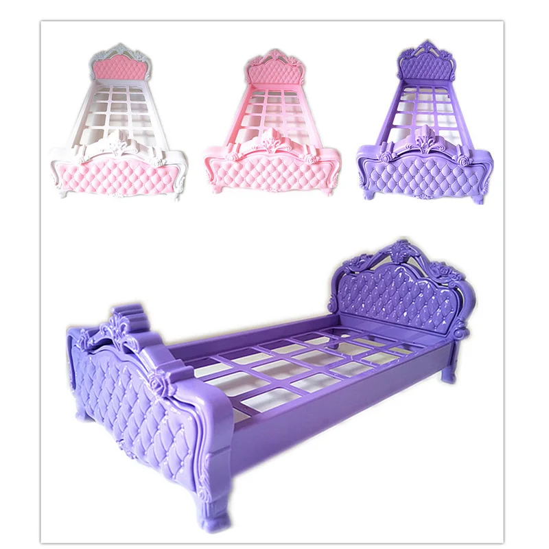 Miniature 1/6 Scale Doll Furniture White Pink Purple Plastic Bed for 25-30cm Dolls House Baby Toys G...