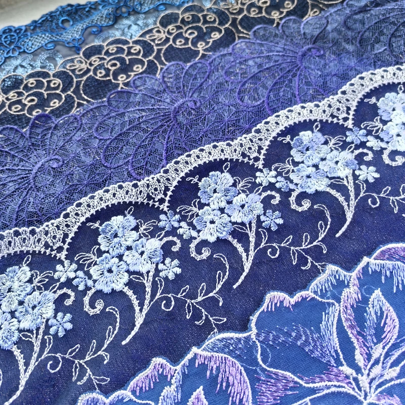 1Yard,Blue and Purple, Embroidered Mesh Lace Fabric, Beautiful Clothing, DIY Garment, Sewing Item, D...