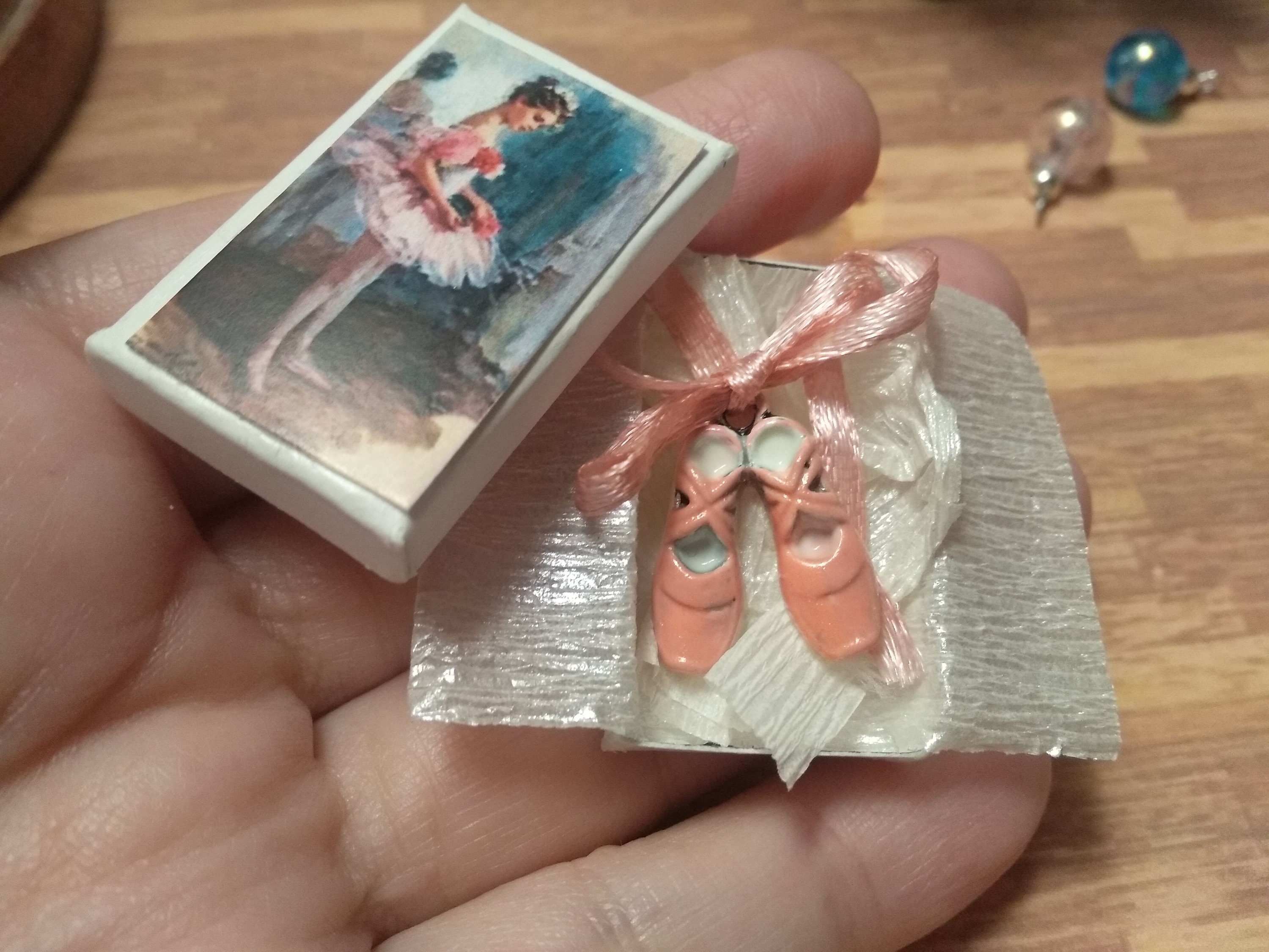 Miniature ballet slippers in gift box, Miniature dollhouse, dance s...