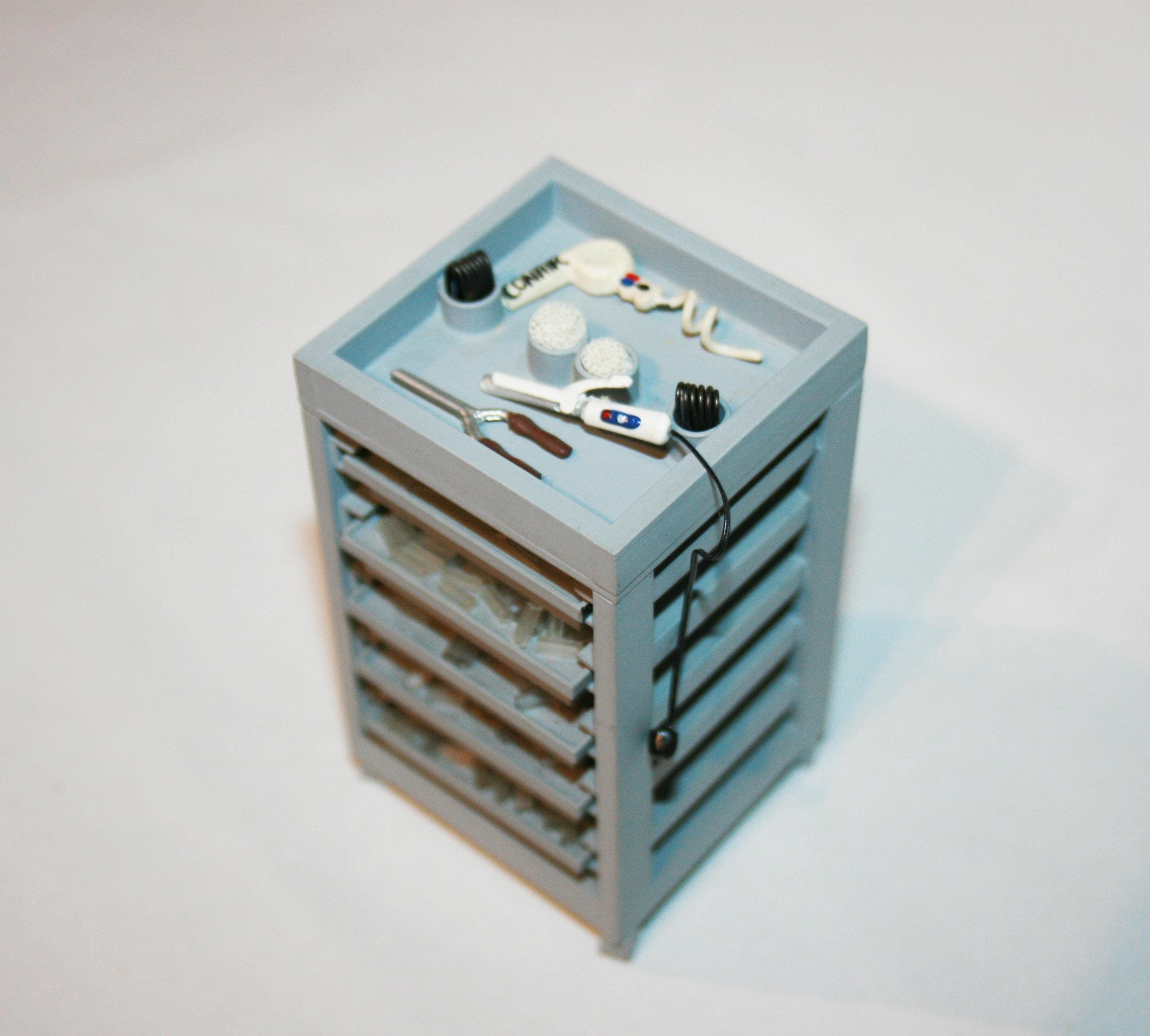 "Dollhouse Miniature Beauty Salon Equipment Roller Trolley 1:12 Scale Grey resin salon trolley ...