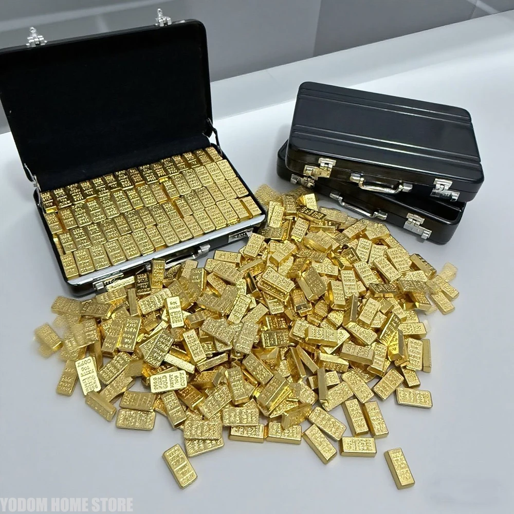 1/12 Dollhouse Mini Decoration Simulated Aluminum Alloy Suitcase With Gold Bar Model Doll Accessory
