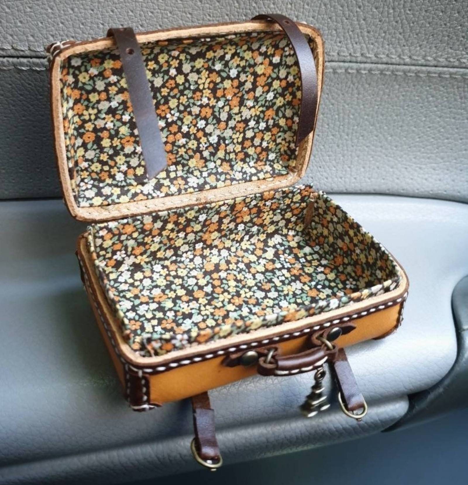 Handmade Lambskin Miniature Suitcase: Tiny Doll Accessory (9.5 cm)