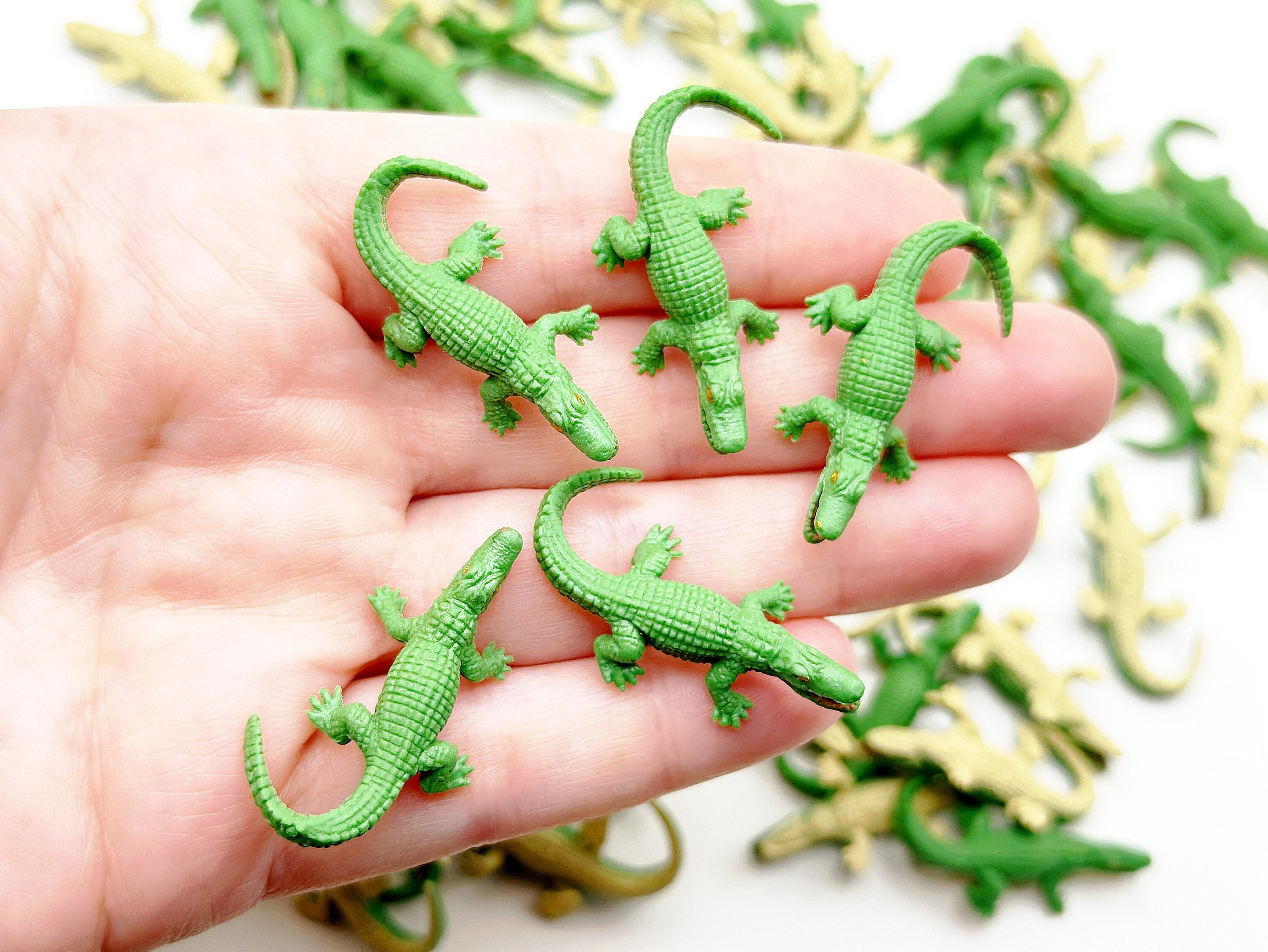 "These tiny miniature alligator figurines are so cute! They are teeny tiny and are a soft squis...