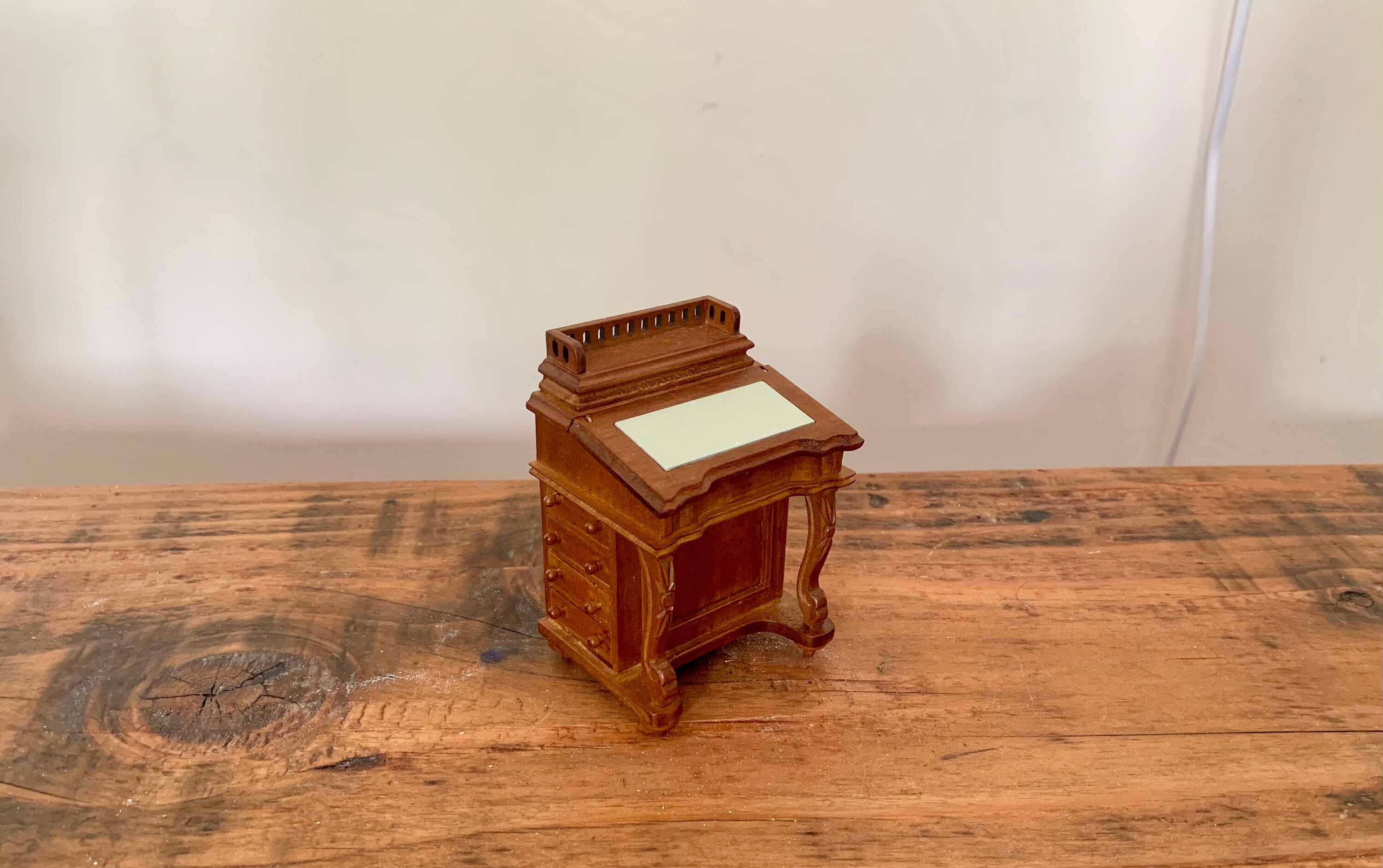 Dollhouse miniature carved writing desk in 1:12 scale walnut color Very nice furniture all drawers (...