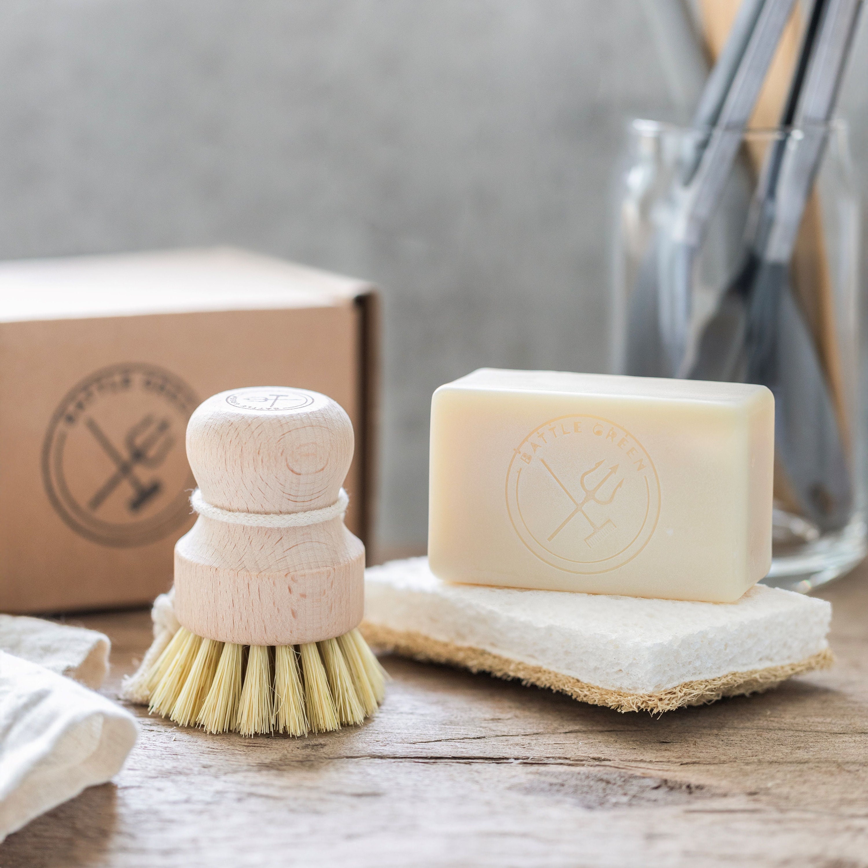 This plastic free washing up set includes a vegan -friendly solid dish soap bar, and an eco-friendly...