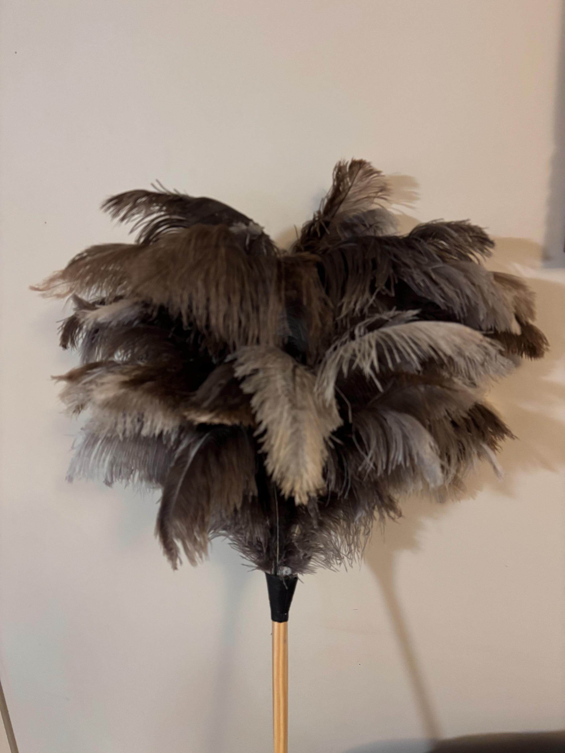 Extra large soft full head ostrich feather duster clear gloss wood ...