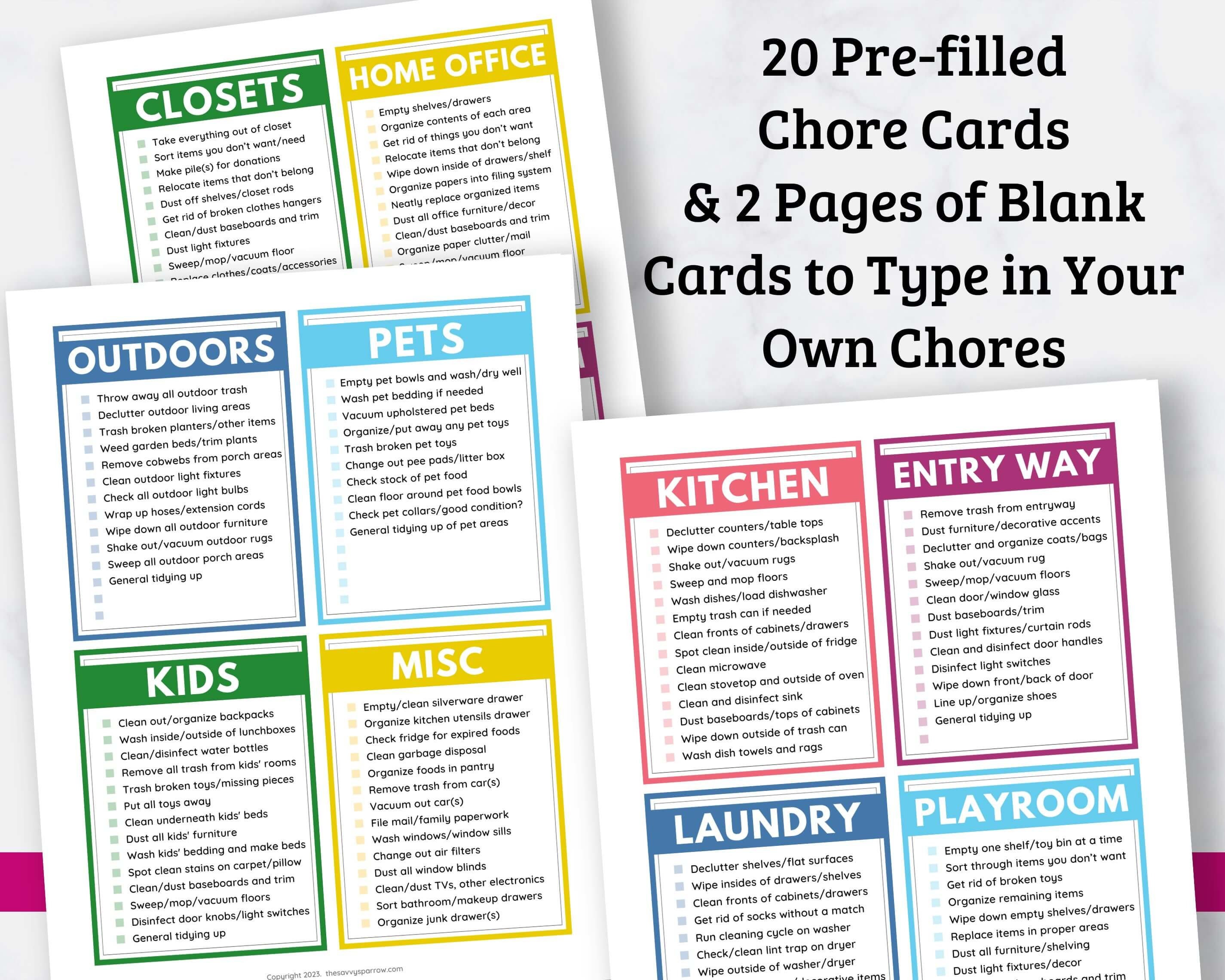 Editable Cleaning Chore Cards - Printable Cleaning Checklist Cards ...