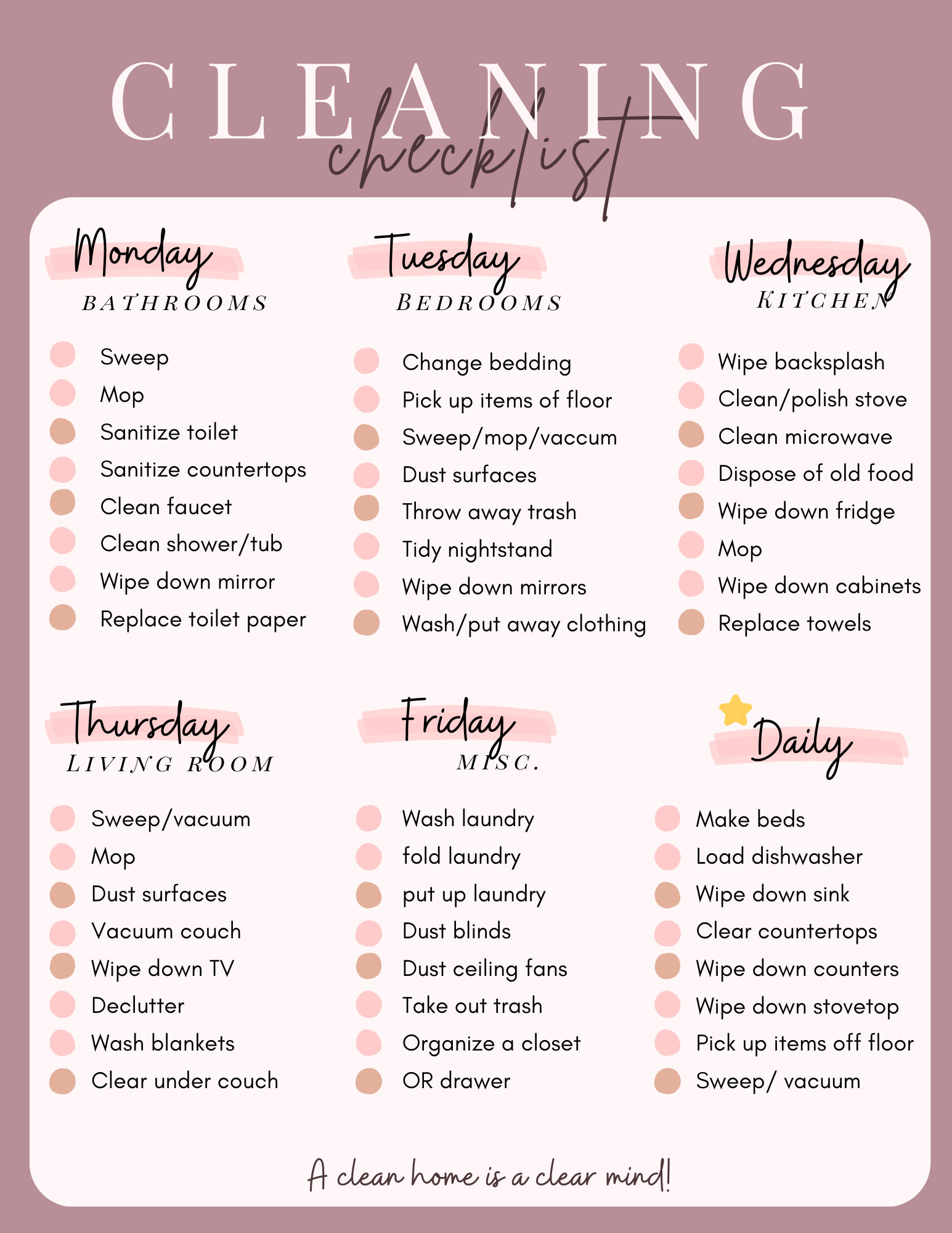 Cleaning Checklist! Basic Home Cleaning checklist digital file