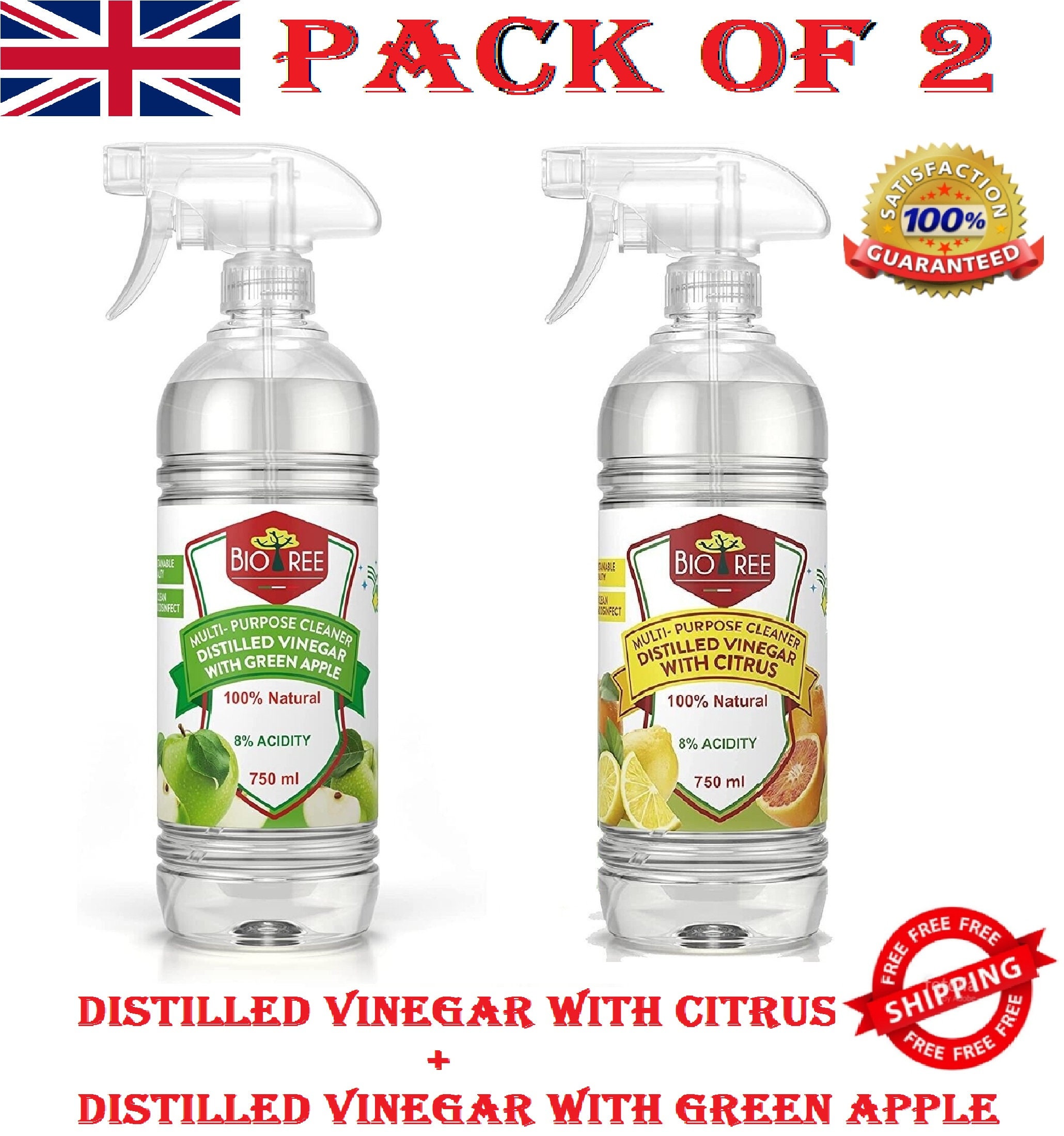 2 X 750ml Biotree, Extra Strong 8% Distilled White Vinegar Multi-purpose Cleaning Bottles - Apple Gr...