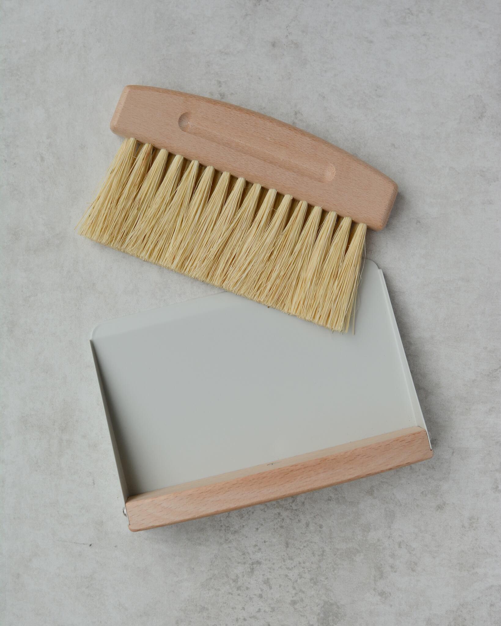 Tidy up crumbs with this compact tabletop brush and dustpan set, made from smooth wood and soft, pla...