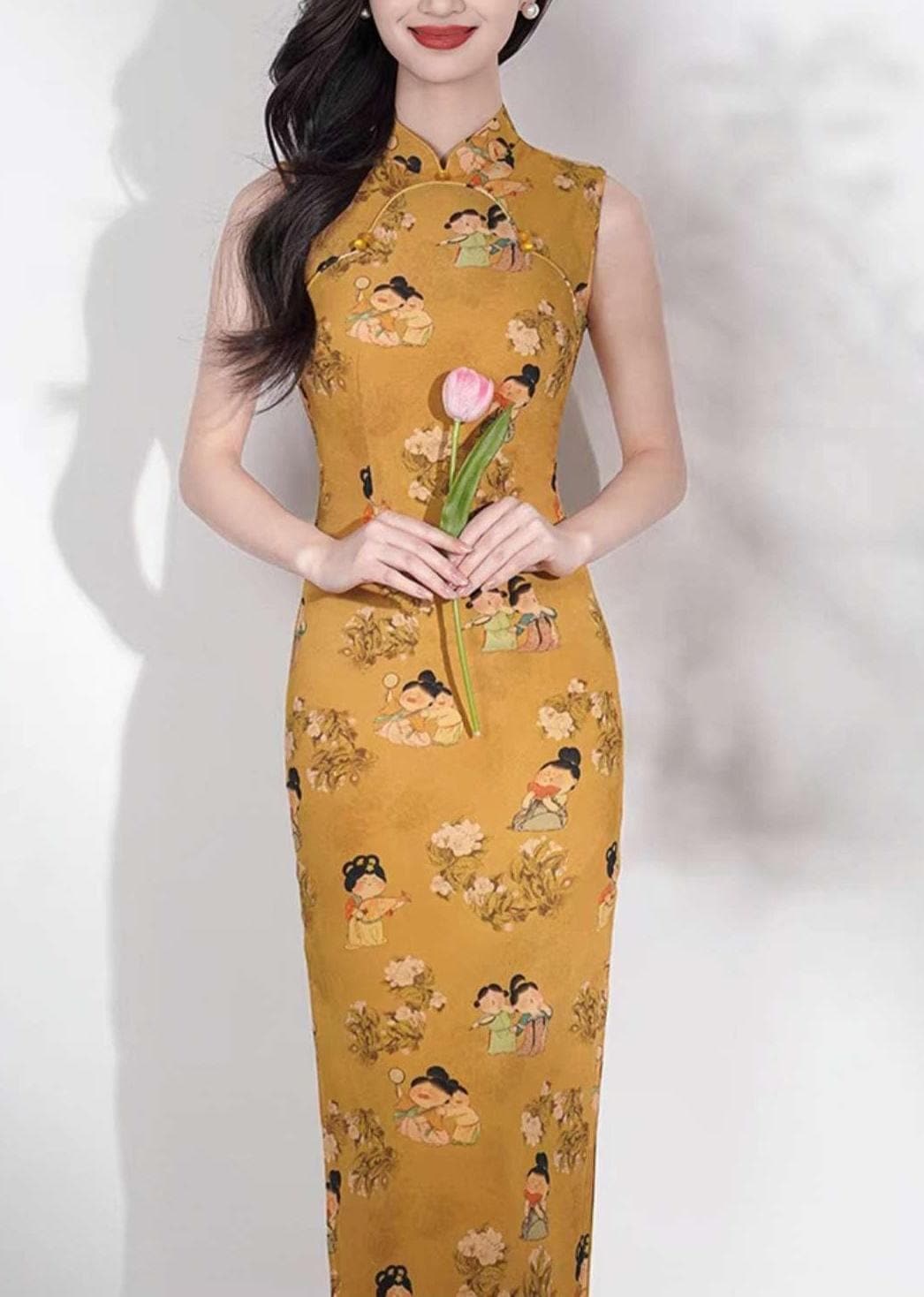 vintage cheongsam dress, Chinese figure print qipao, gift for mom, ...