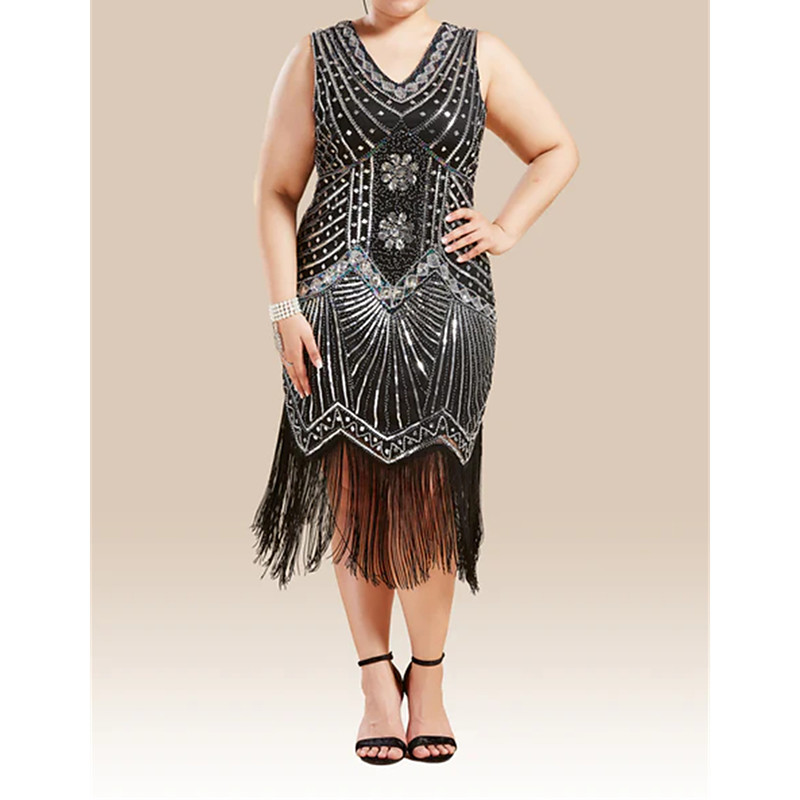 Retro Vintage Roaring 20s 1920s Mini Flapper Dress Dress Plus Size ...