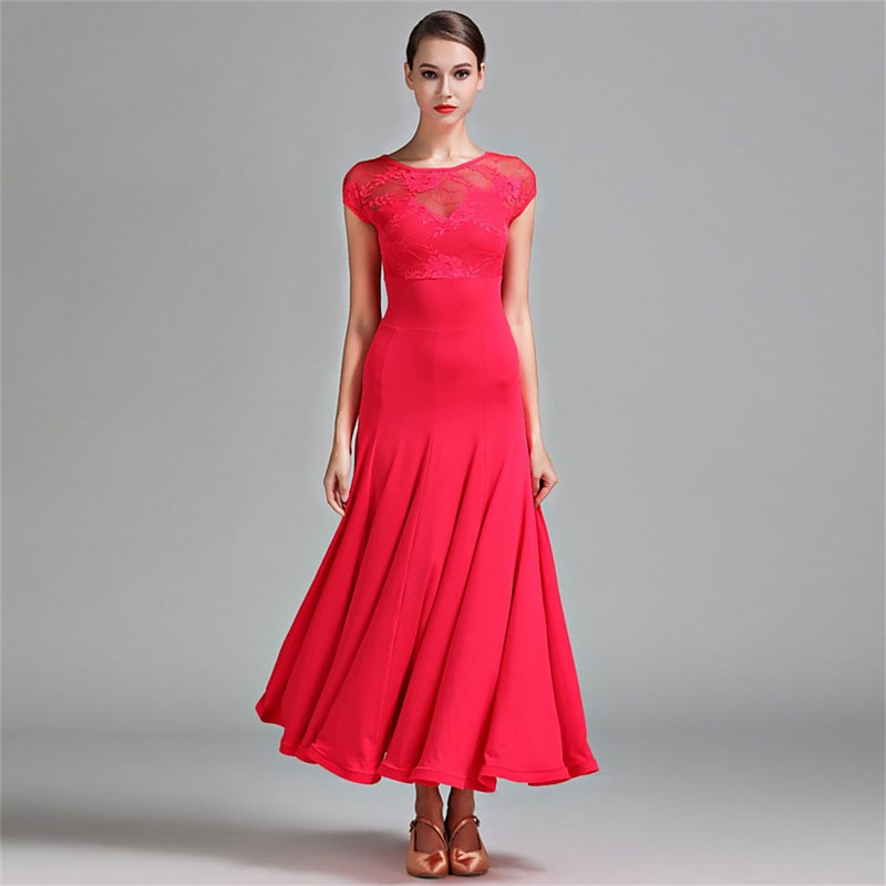 Category:Ballroom Dance; Embellishment:Pure Color,Splicing; Fabric:Lace,Milk Fiber; Sleeve Length:Ca...