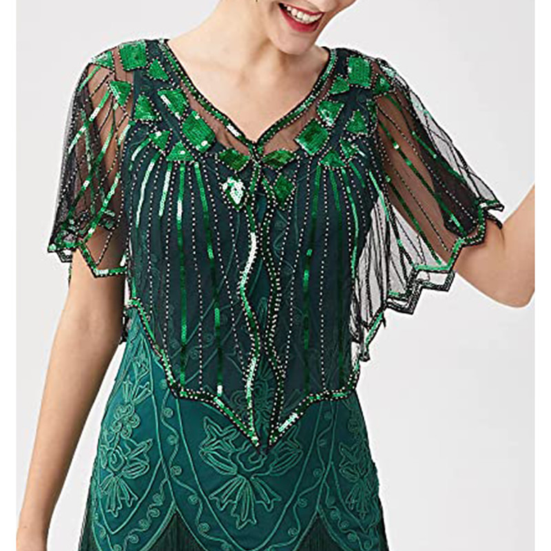 1920s Shawl Wraps Sequin Beaded Evening Cape Bridal Shawl Bolero Fl...