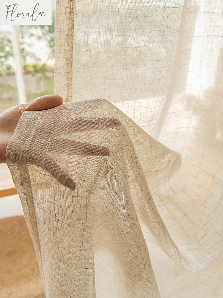 Custom Size White Tulle Beige Linen Look Sheer Curtians S Wave for Living Room Bedroom Luxury Modern...
