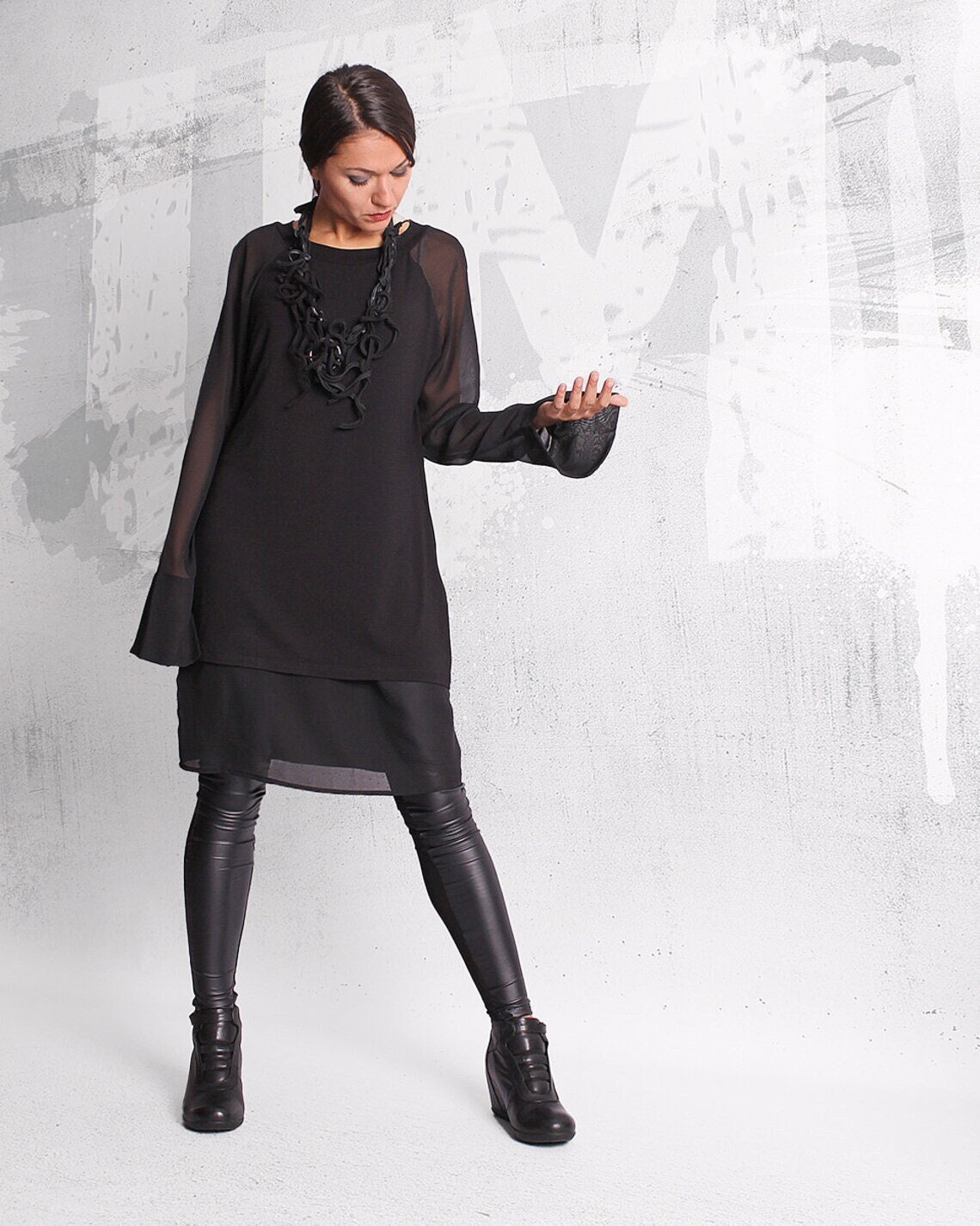 "Black tunic, blouse with long sleeves, black tunic, black top, loose top, long tunic, tunic dr...