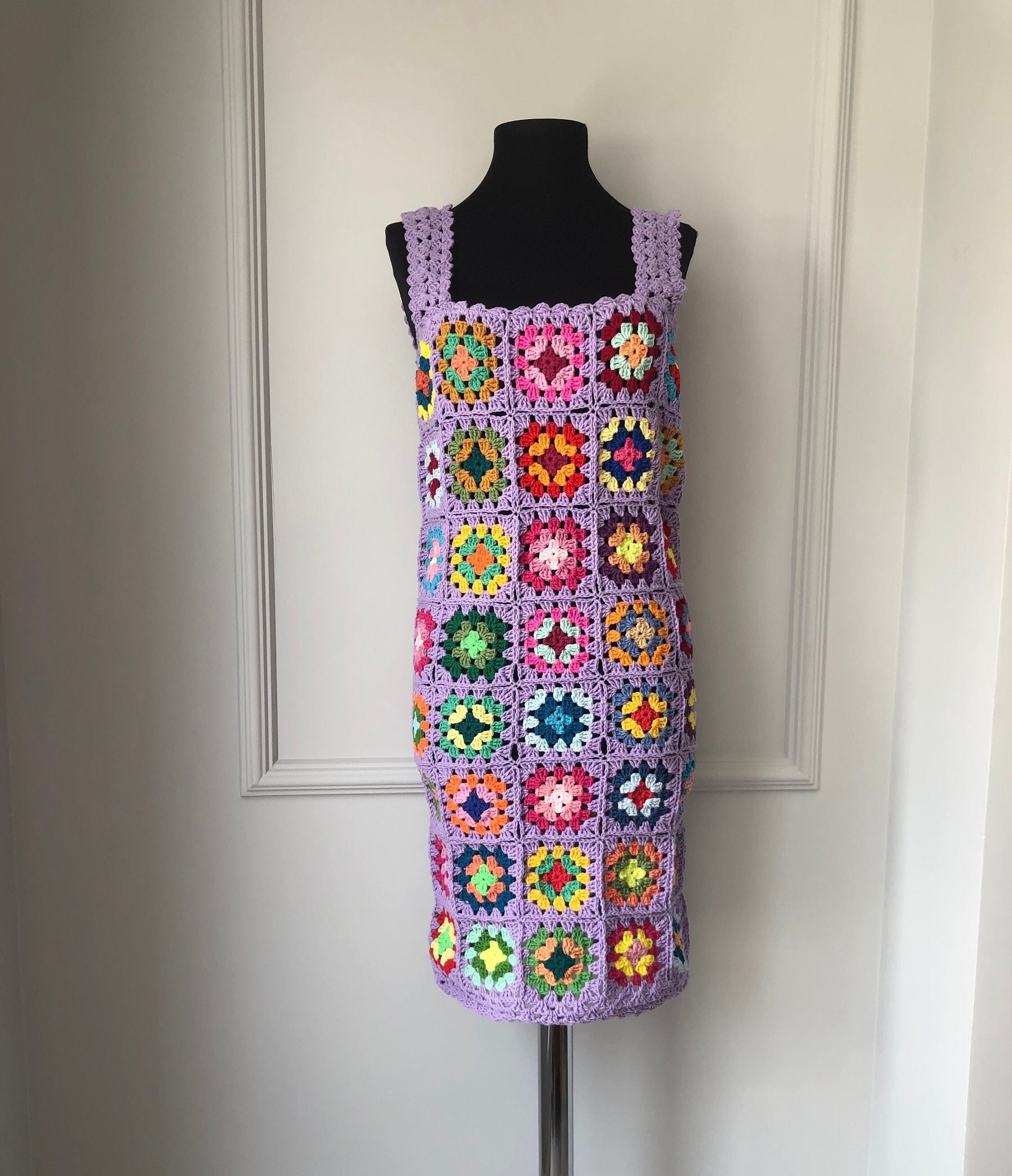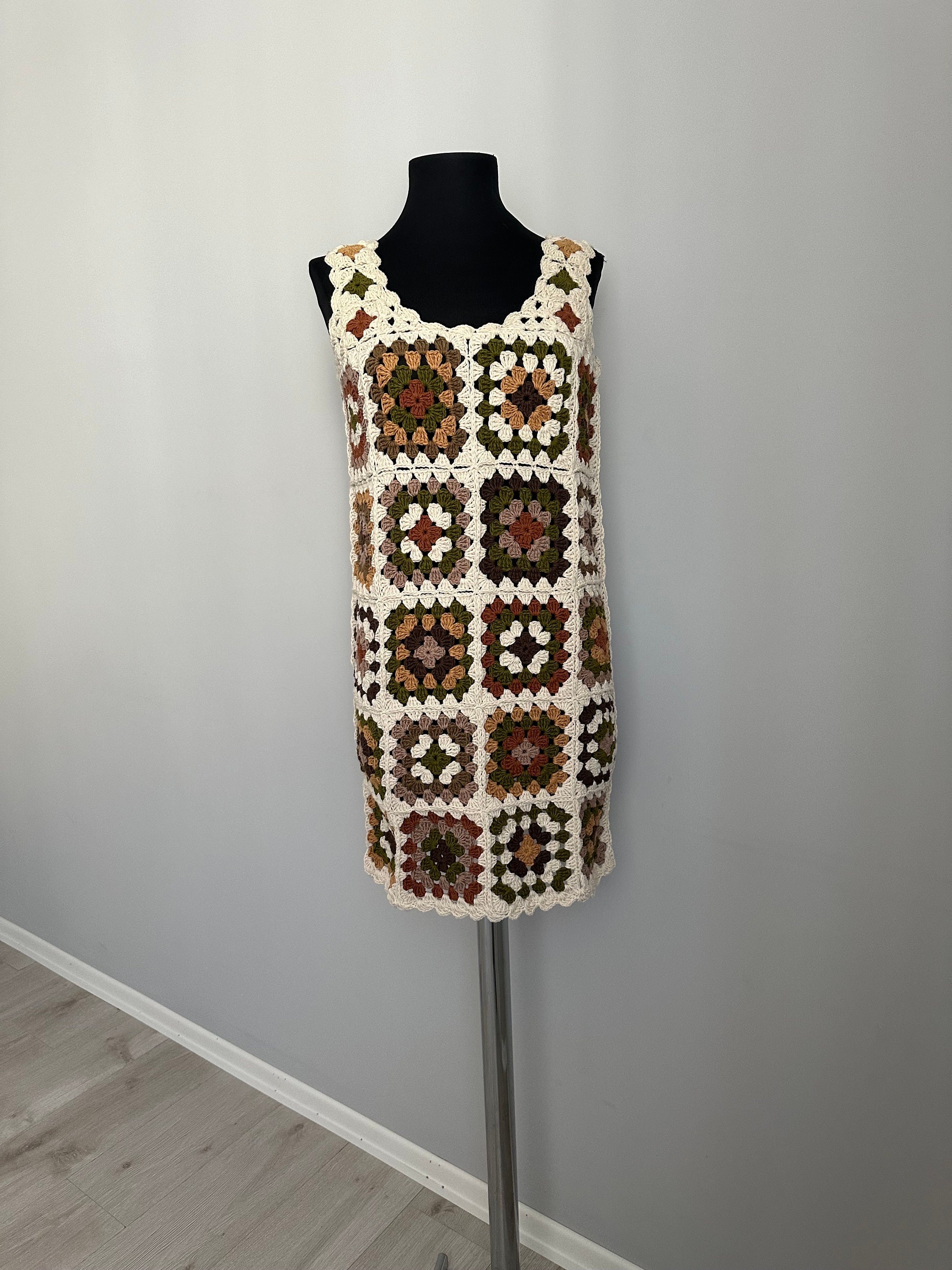 Crochet Granny Square Dress Boho Style | Handmade Crochet Dress | F...