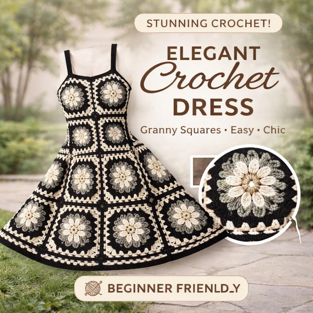 Introducing our enchanting Crochet Granny Square Dress, a true testament to the art of hand knitting...