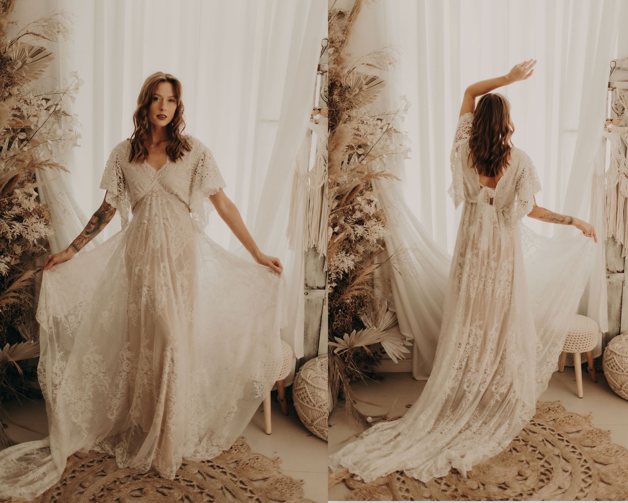 Emilia boho wedding dress, bohemian wedding dress, Bohemian lace we...