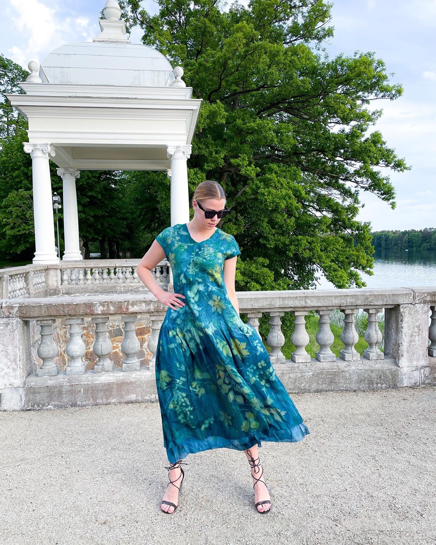 Botanical Print Eri Silk Dress: Bohemian Ahimsa Vegan Silk