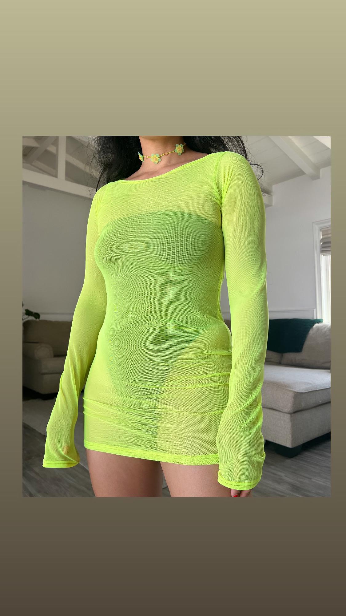 please read description below bikini cover up / mesh dress long sleeve mini style dress is entirely ...