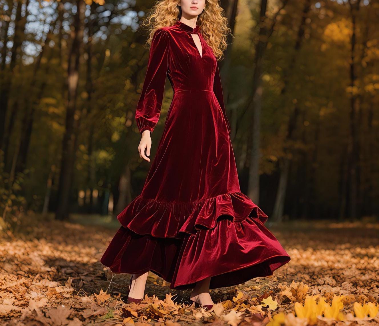 Velvet Dress for Women Velvet Maxi Dress Burgundy Formal Dress Keyh...