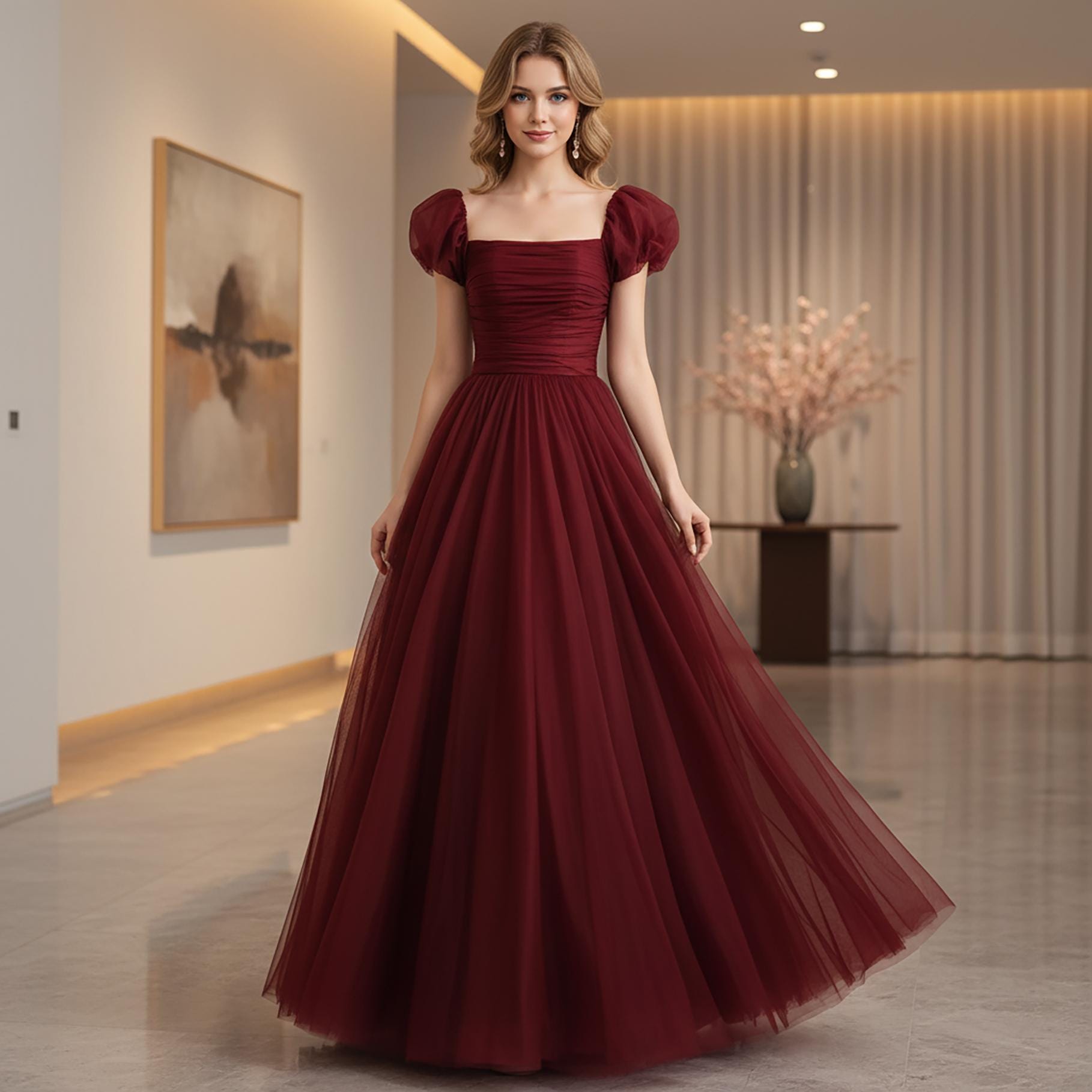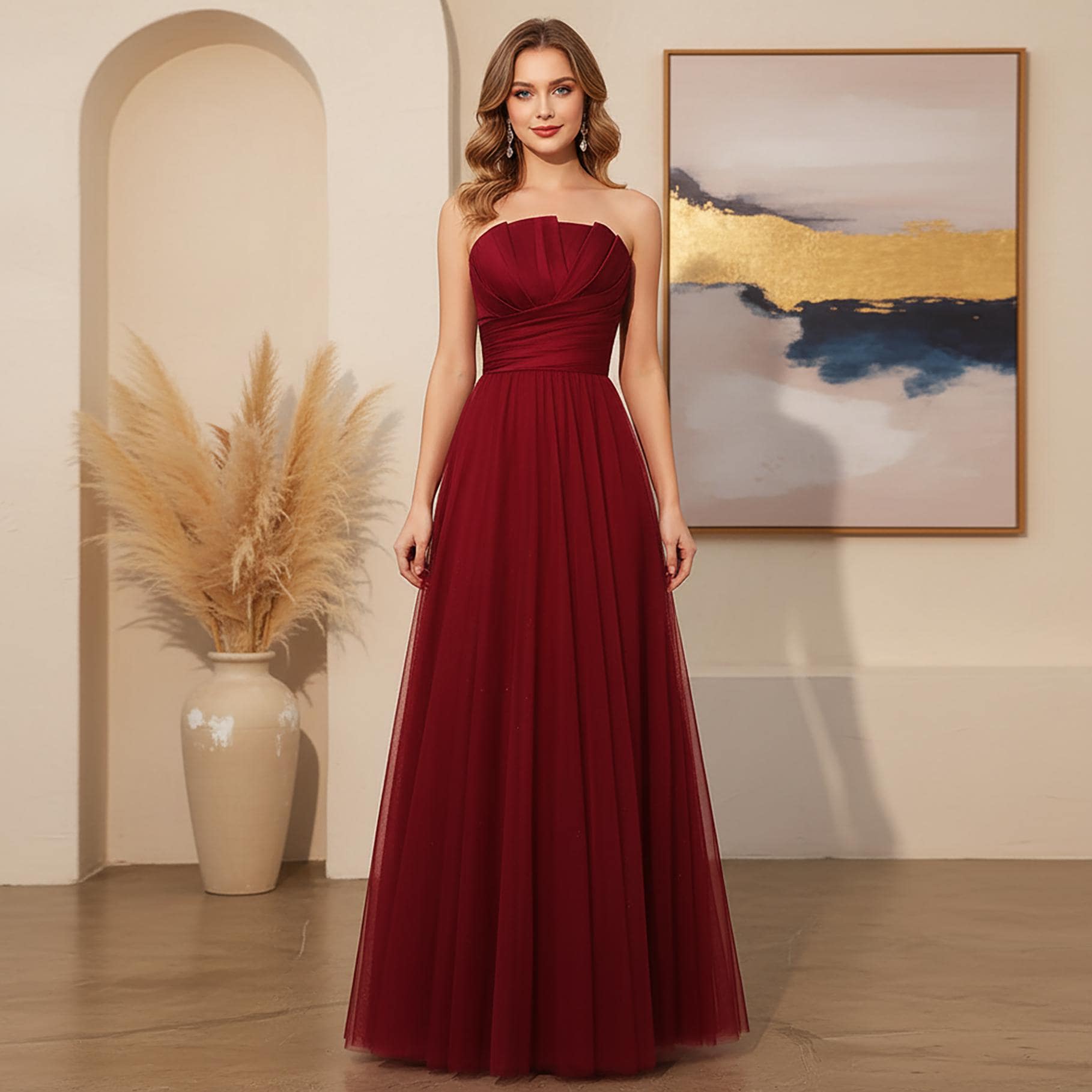 Elegant Red Tube Long Prom Dress, Tulle Prom Dress, Elegant Gown, C...