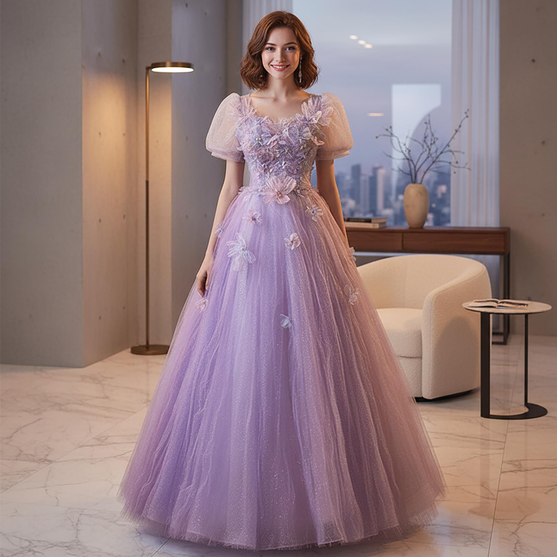 With a design inspired by the grace of noble ladies, this gown embodies the splendor of royal soir&e...