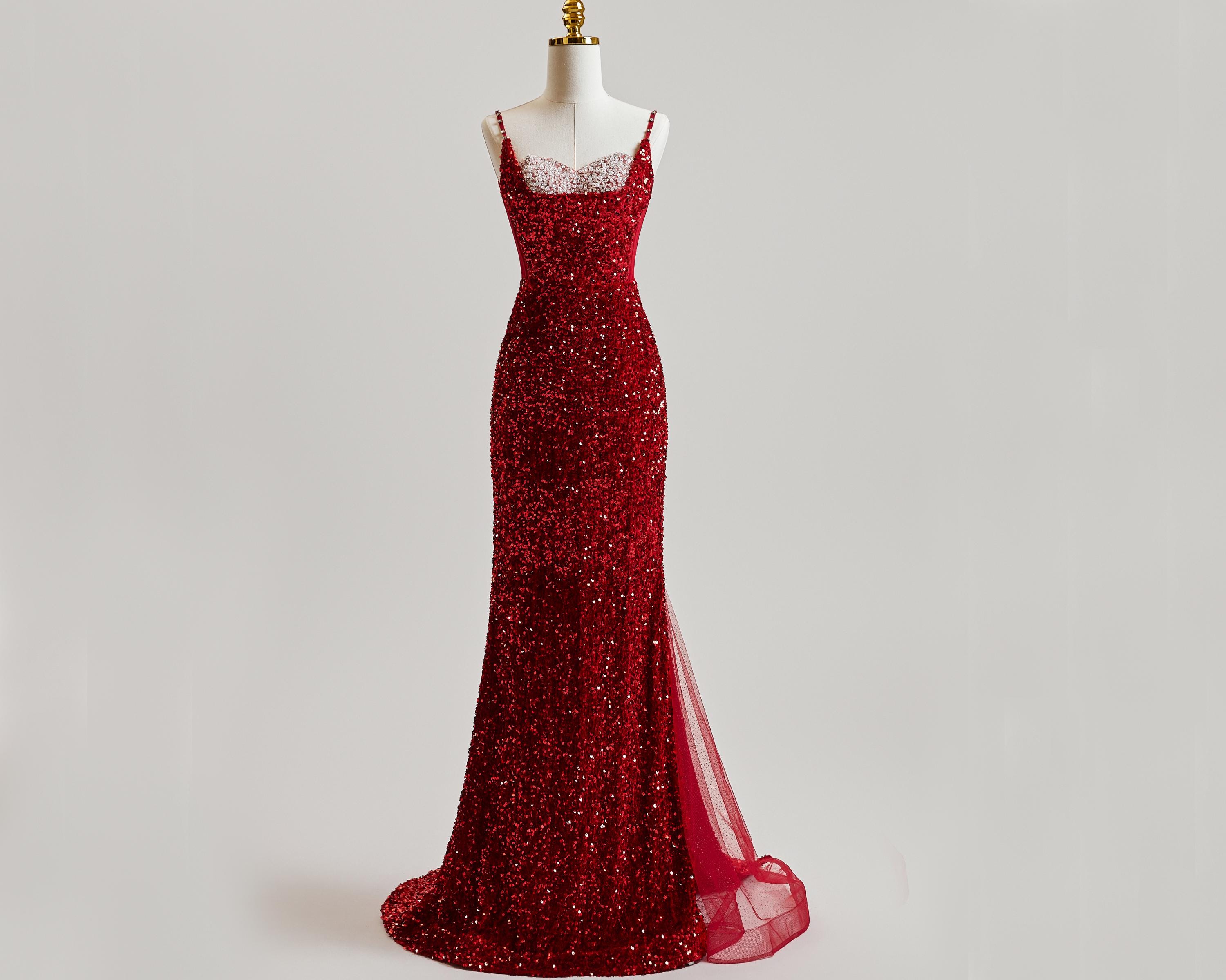 Red Prom Dress, Mermaid Prom Dress, Long Prom Dress, Sequined Prom ...