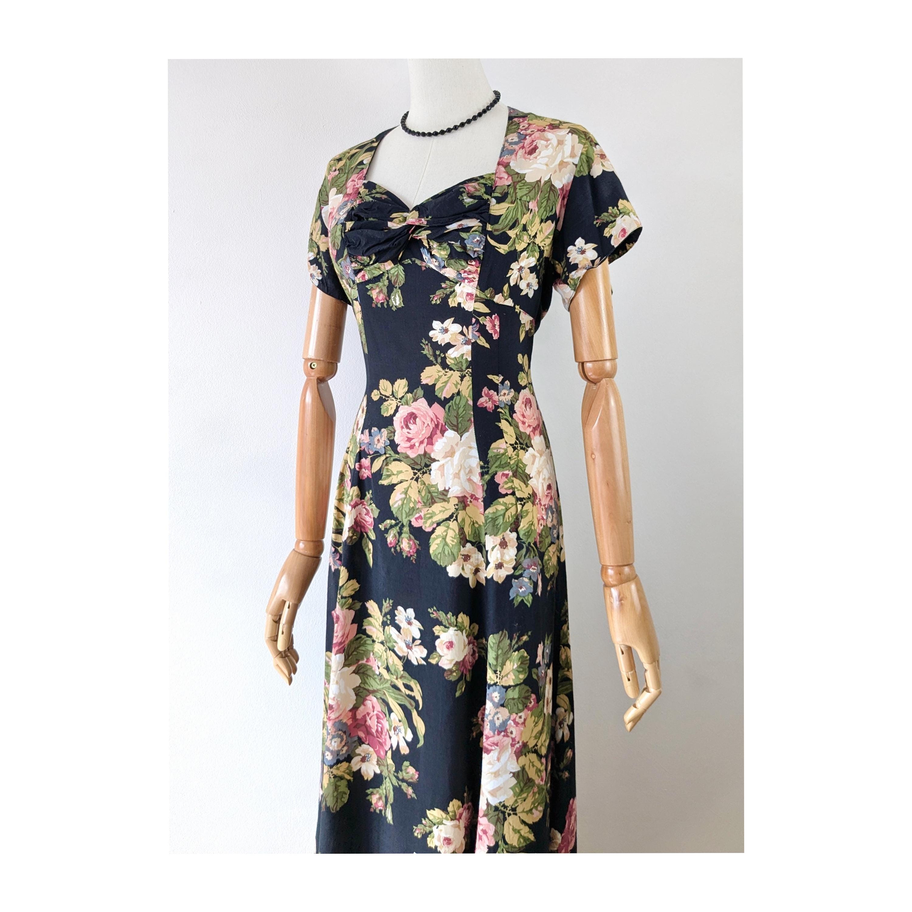 Karen Alexander 1990s Dark Floral Dress * Vintage 1990s Rose Print ...
