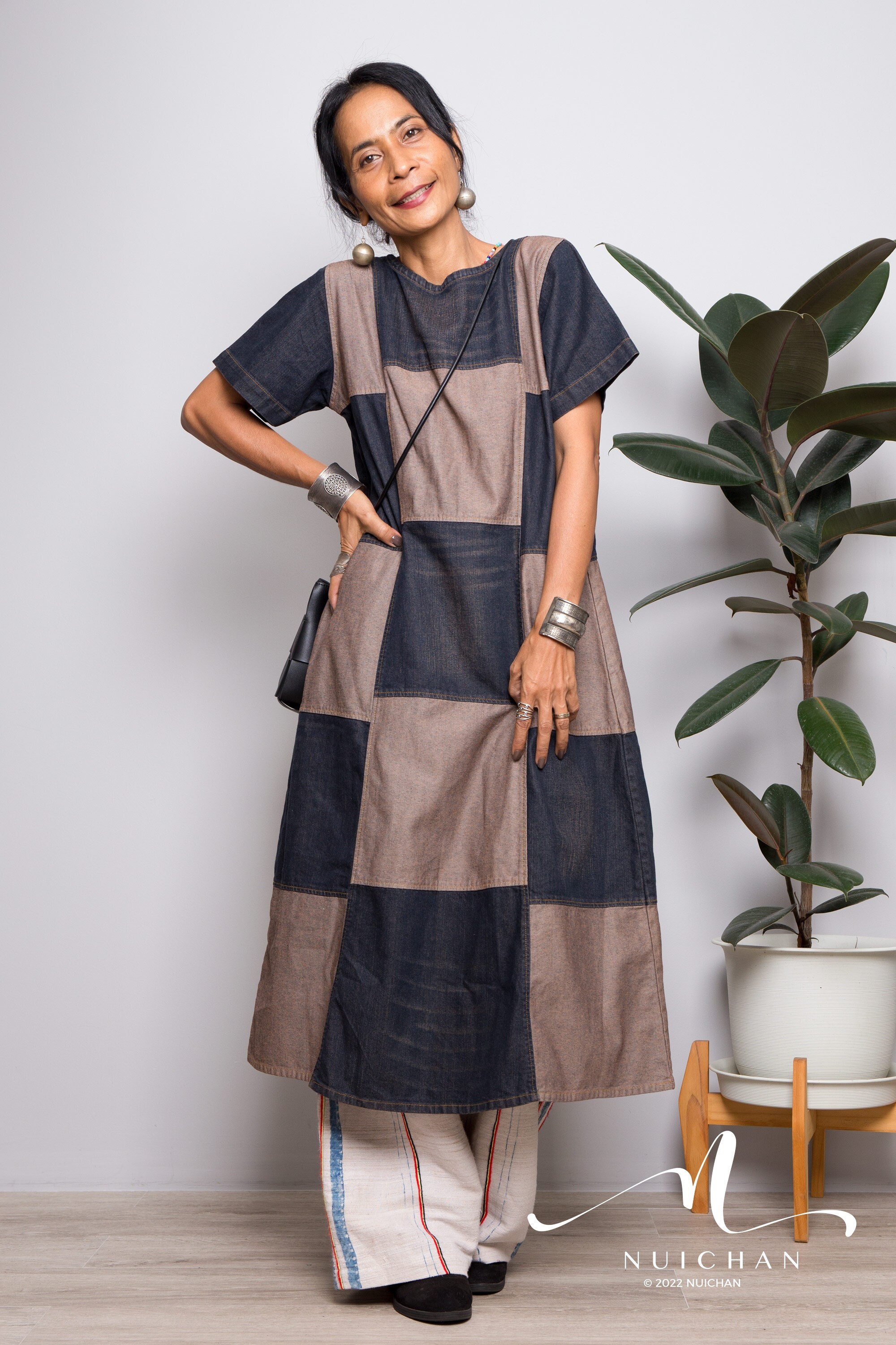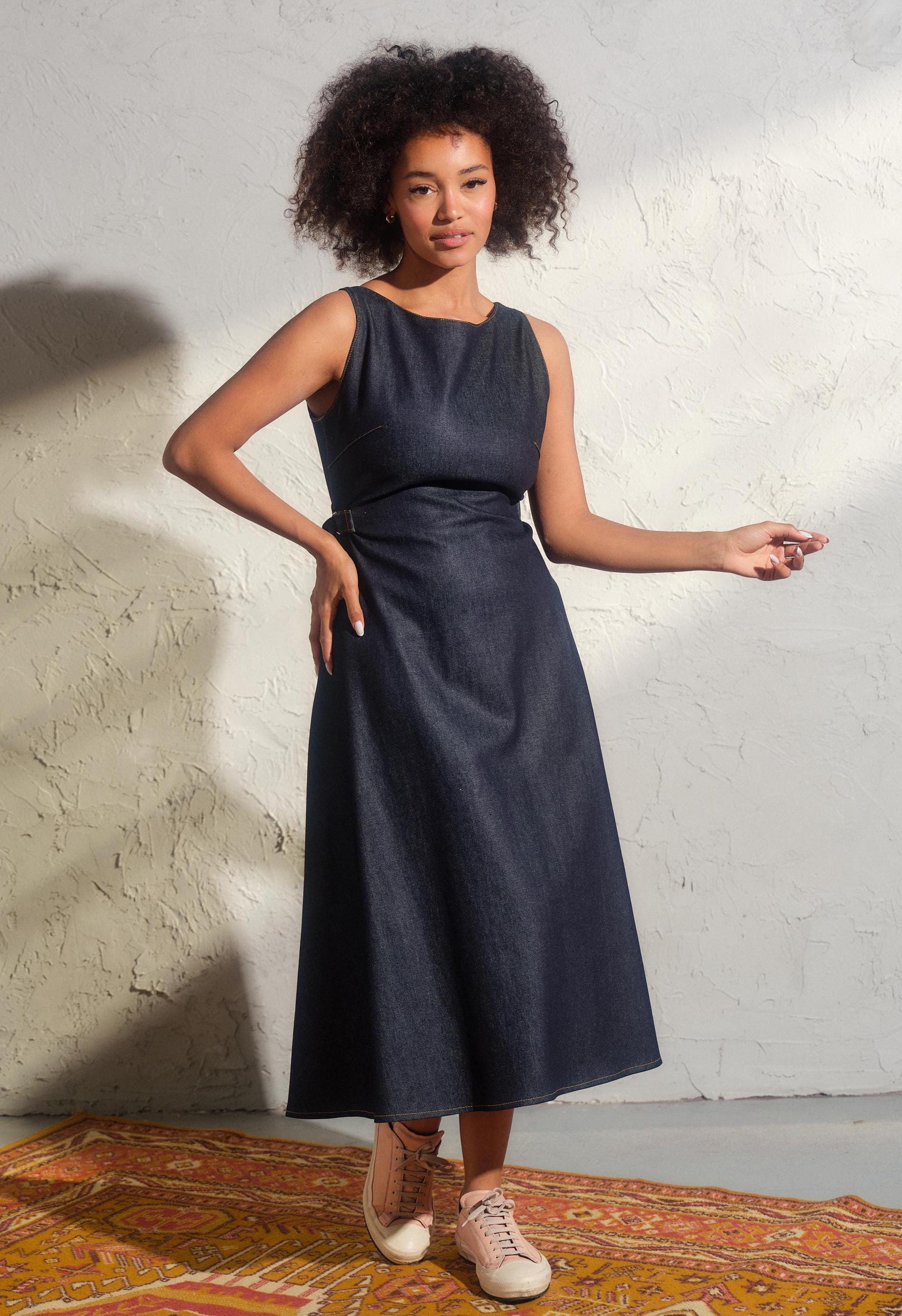 "Step out of the ordinary and into your own with our handmade denim midi dress, crafted to bala...