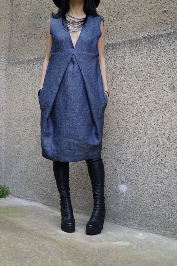 We love the laid-back feel of this unique dress. Cut from beautifully linen blue denim that feels ef...