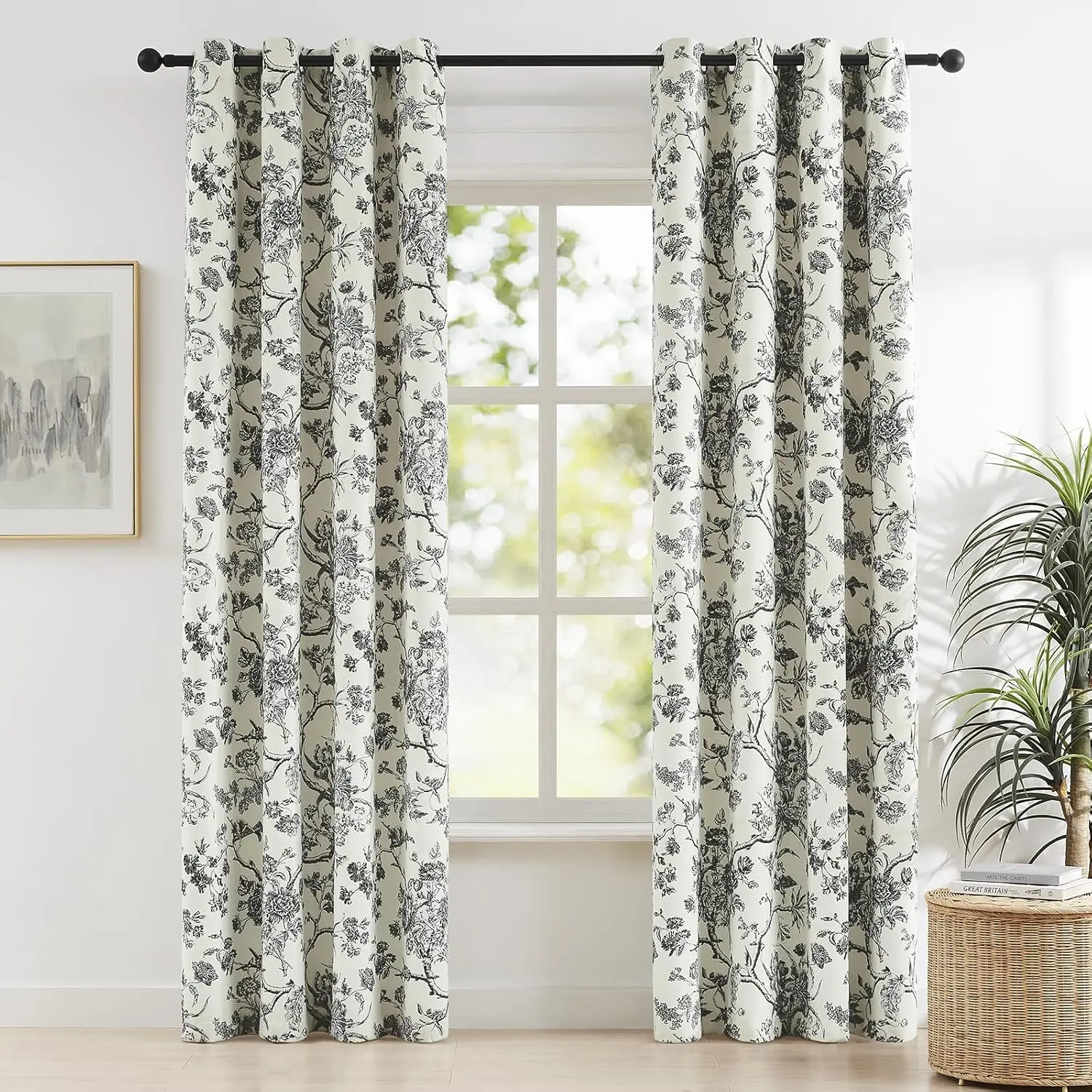 Kurtain Vintage Floral Blackout Cotton Curtains for Patio Door Livi...